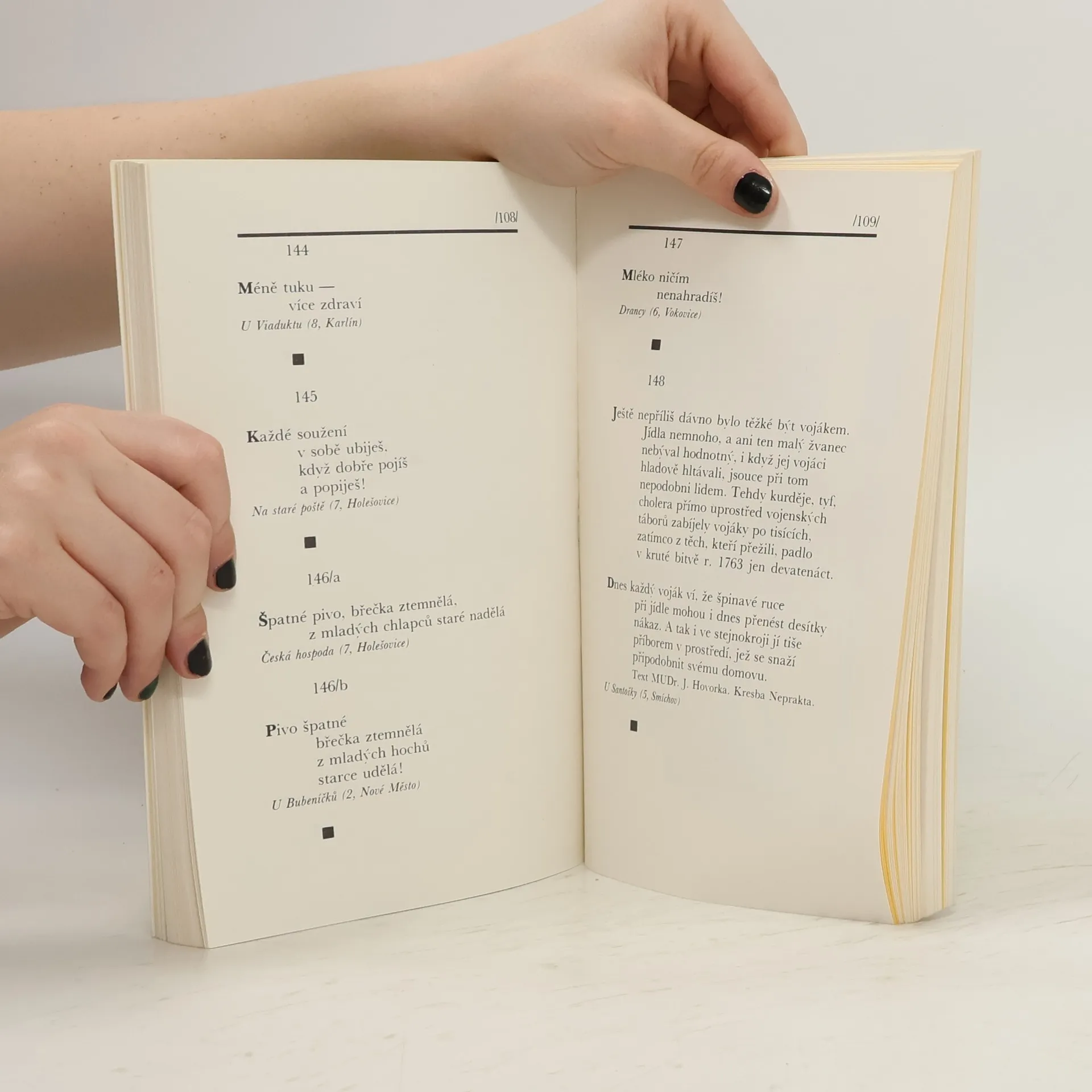 Autor knihy - profesor sociologie Boris Grušin při svém pobytu v Praze v 60. a 70.letech navštívil téměř 800 pražských hospod, a kromě pití piva si zapisoval vtípky, aforismy, básničky ze stěn a výčepů těchto podniků. Svoje zápisky vložil do knihy In pivo veritas.