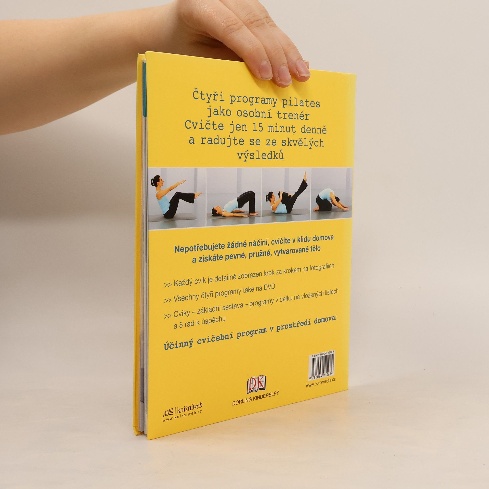 Čtyři programy pilates jako osobní trenér. Cvičte jen 15 minut denně a radujte se ze skvělých výsledků. Nepotřebujete žádné náčiní, cvičíte v klidu domova a získáte pevné, pružné, vytvarované tělo. Každý cvik je detailně zobrazen krok za krokem na fotografiích. Všechny čtyři programy také na DVD. Cviky – základní sestava –programy v celku na vložených listech – 5 rad k úspěchu Účinný cvičební program v prostředí domova