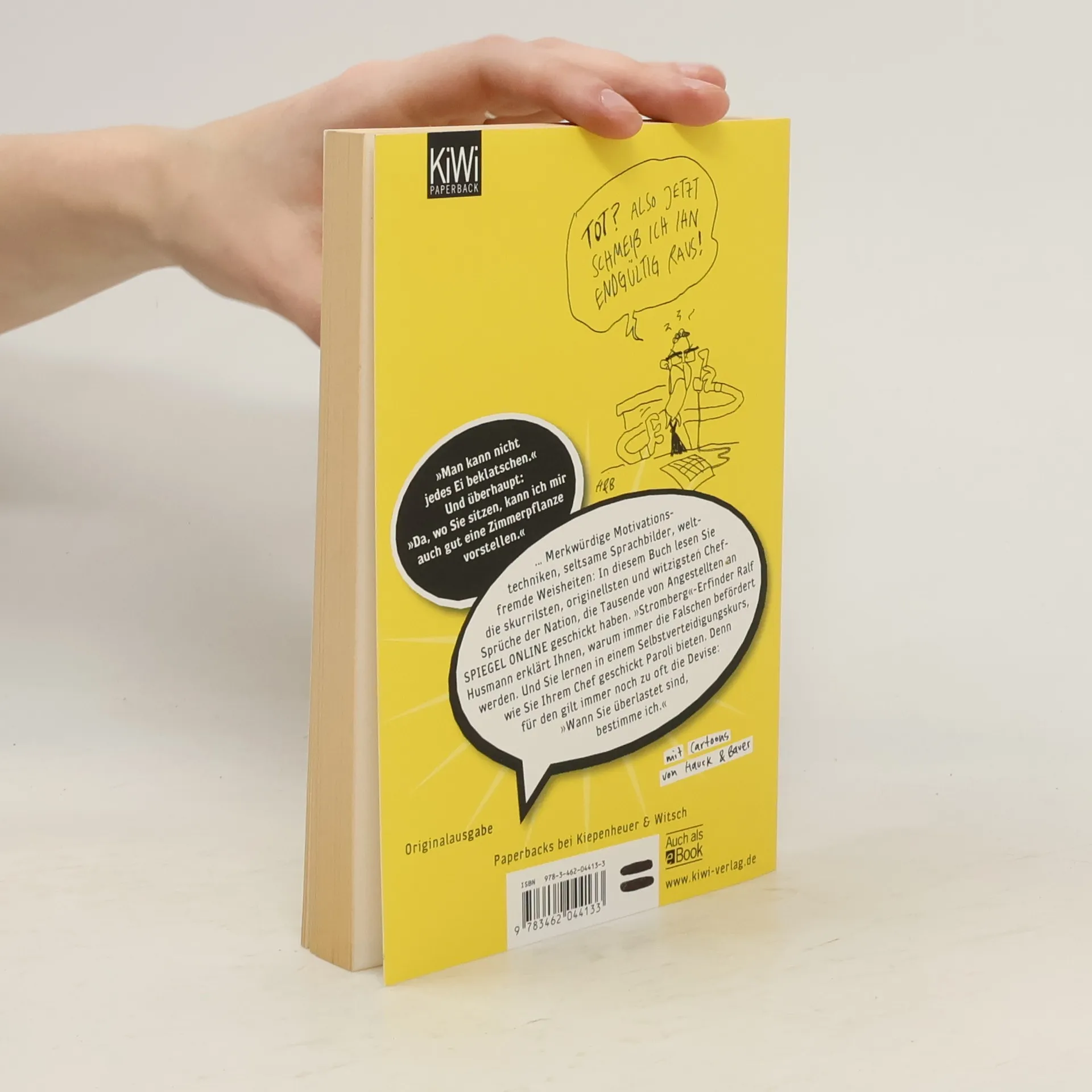 »Ich schicke den besten Mann aus meinem Team. Ich komme selbst!« Die schönsten Chef-Sprüche der Nation »Wollten Sie nicht Karriere machen?« Dann aufgepasst, denn: »Nur Druck formt Diamanten « … Merkwürdige Motivationstechniken, seltsame Sprachbilder, weltfremde Weisheiten: Die Chefetagen vieler Firmen werden von Motivationsrambos und Code-Meistern bevölkert. Tausende von Angestellten haben ihre Perlen der Chef-Weisheiten an SPIEGEL ONLINE geschickt. Und mehr als 10 Millionen Leser haben die Rubrik binnen kürzester Zeit aufgerufen. Dieses Buch versammelt die skurrilsten, lustigsten und besten Chef-Sprüche der Nation. Es ist ein Mahnmal für alle, die unter der Schreckensherrschaft von Büro-Ekeln leben. Leiden Sie mit ihnen, blicken Sie in die tiefsten Abgründe der »Stromberg«-Republik – und lernen Sie, sich zu wehren. Denn dieses Buch enthält auch einen Selbstverteidigungskurs für geplagte Angestellte. Freuen Sie sich auf eine Aphorismen-Sammlung der irrwitzigen Art – und denken Sie immer daran: »Wer lacht, hat noch Reserven.«