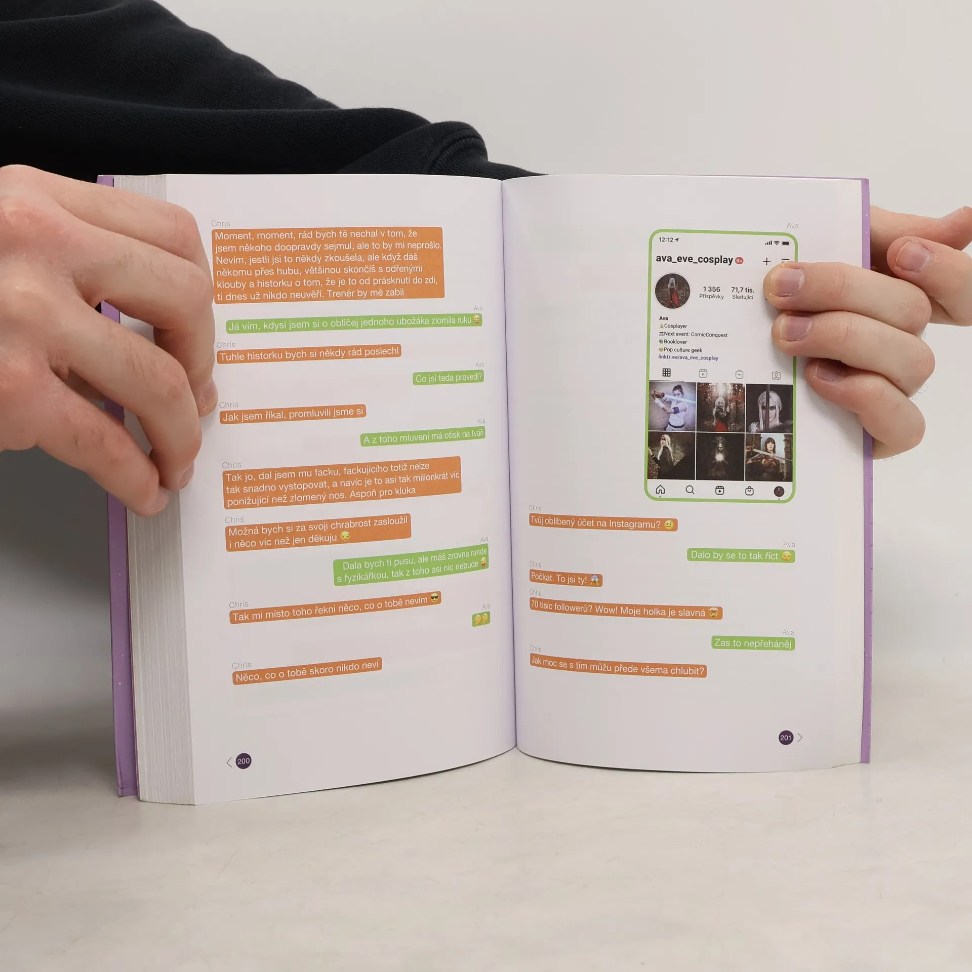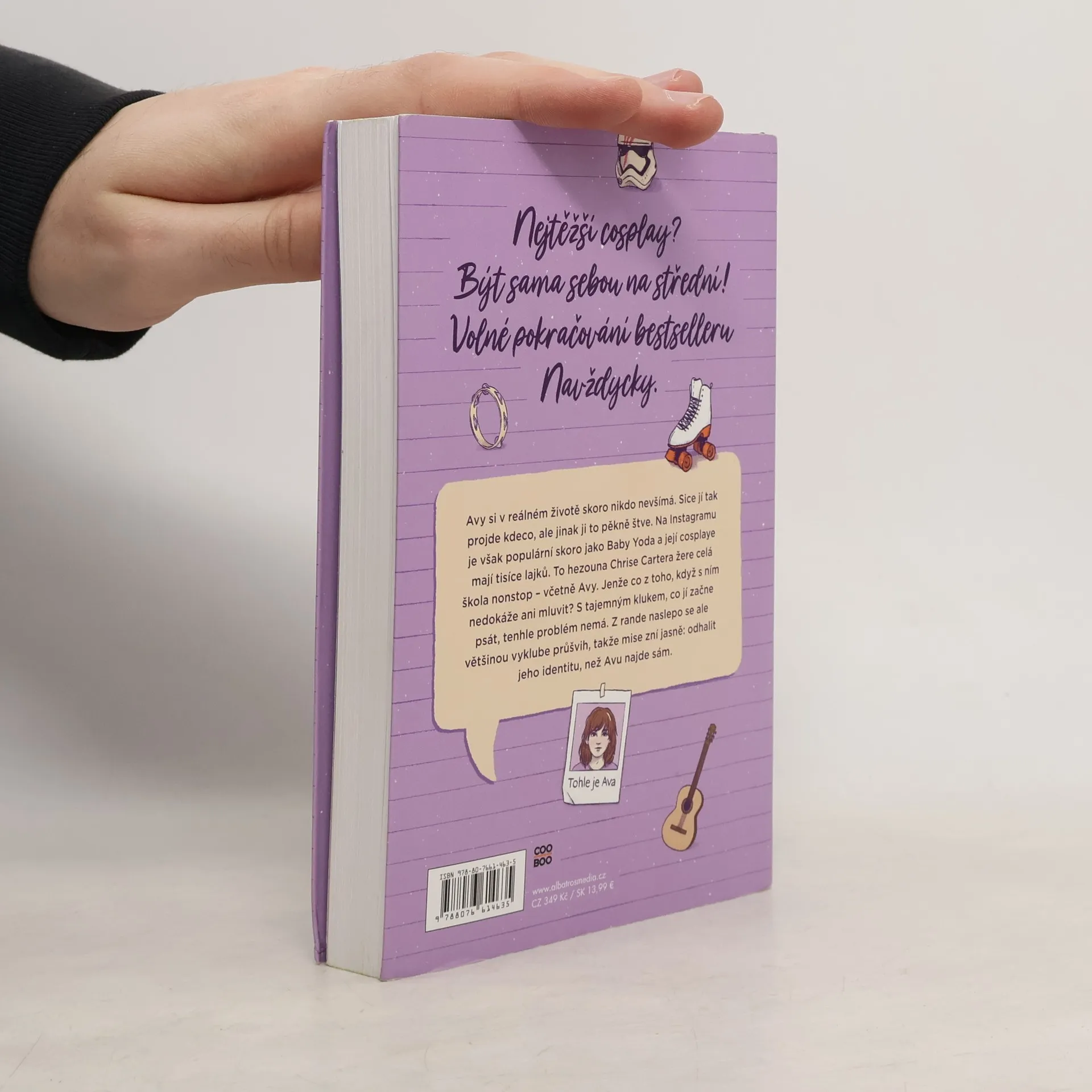 Nejtěžší cosplay? Být sama sebou na střední! Volné pokračování bestselleru Navždycky. Avy si v reálném životě skoro nikdo nevšímá. Sice jí tak projde kdeco, ale jinak ji to pěkně štve. Na Instagramu je však populární skoro jako Baby Yoda a její cosplaye mají tisíce lajků. To hezouna Chrise Cartera žere celá škola nonstop – včetně Avy. Jenže co z toho, když s ním nedokáže ani mluvit? S tajemným klukem, co jí začne psát, tenhle problém nemá. Z rande naslepo se ale většinou vyklube průšvih, takže mise zní jasně: odhalit jeho identitu, než Avu najde sám.