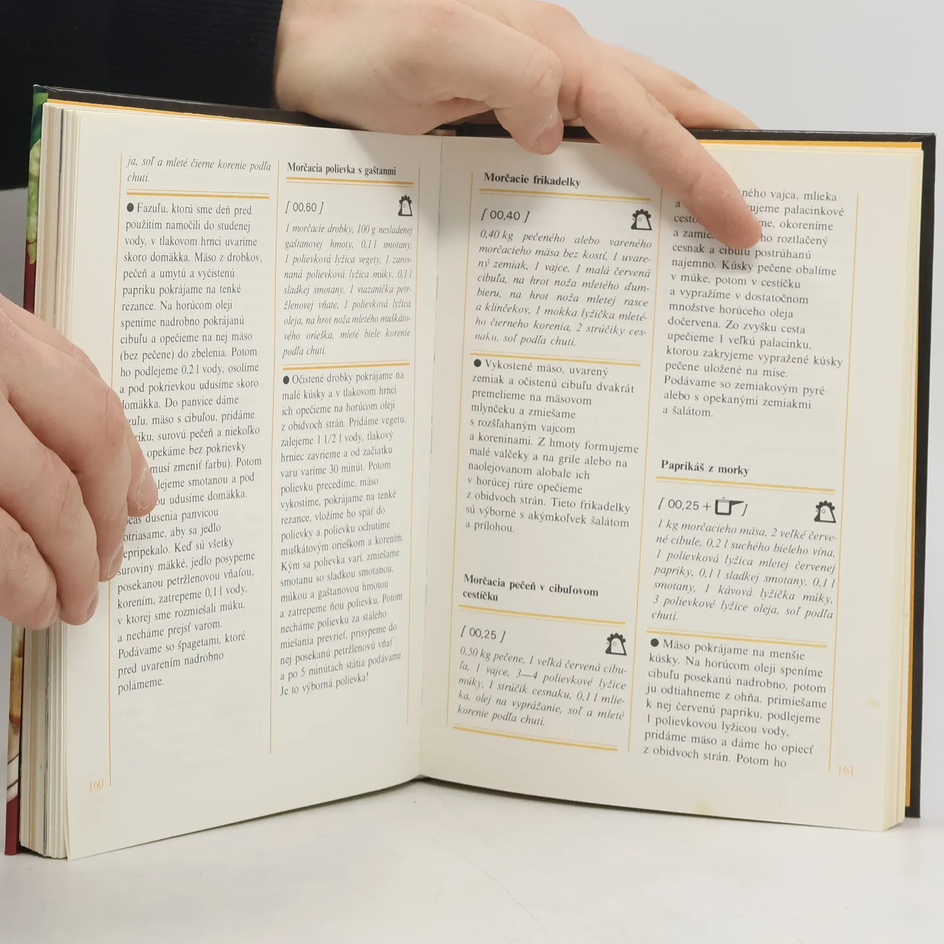 460 jedál z domácej hydiny (kura, sliepka, kačica, hus, morka, holuby, perlička) a pernatej zveri (divé kačice, bažanty).