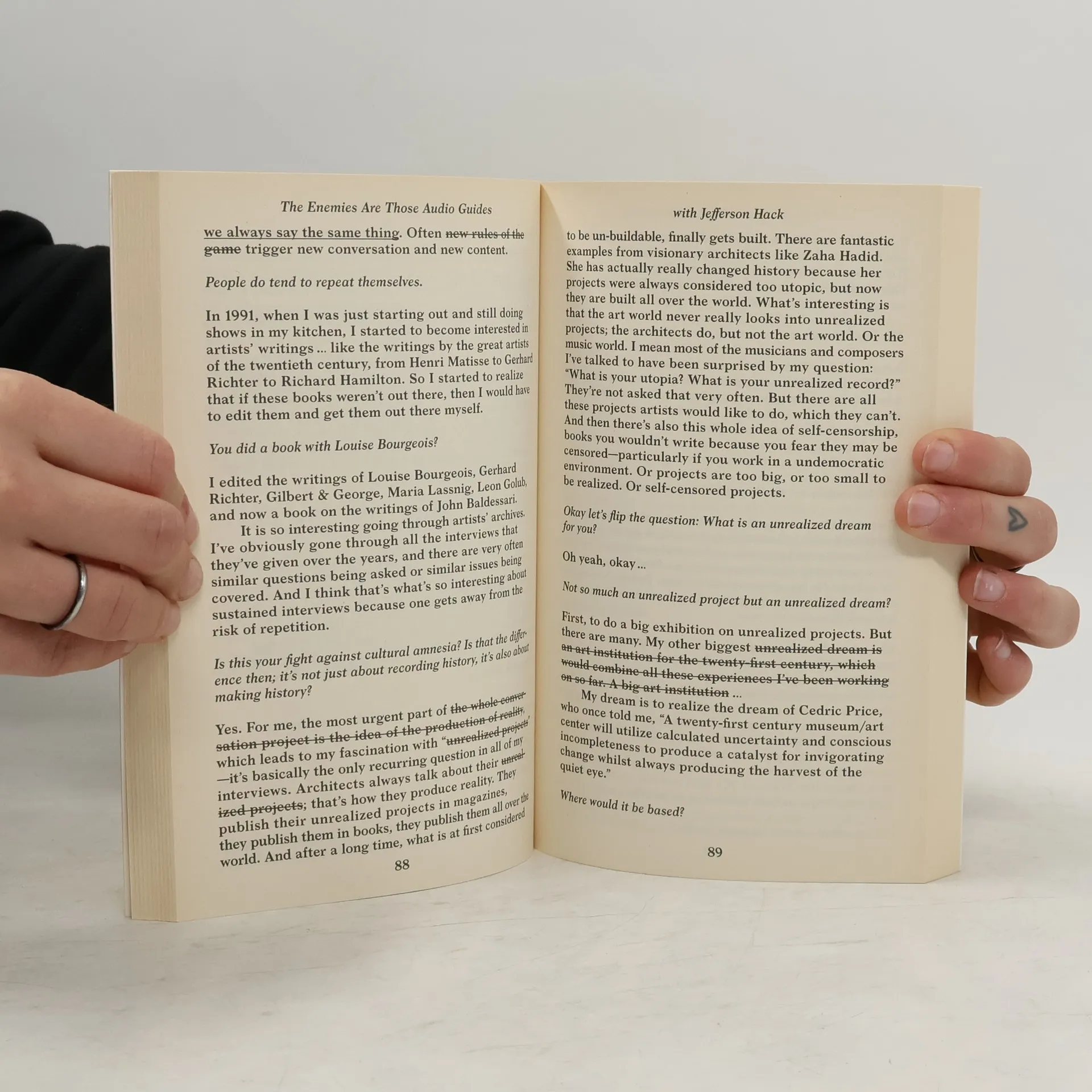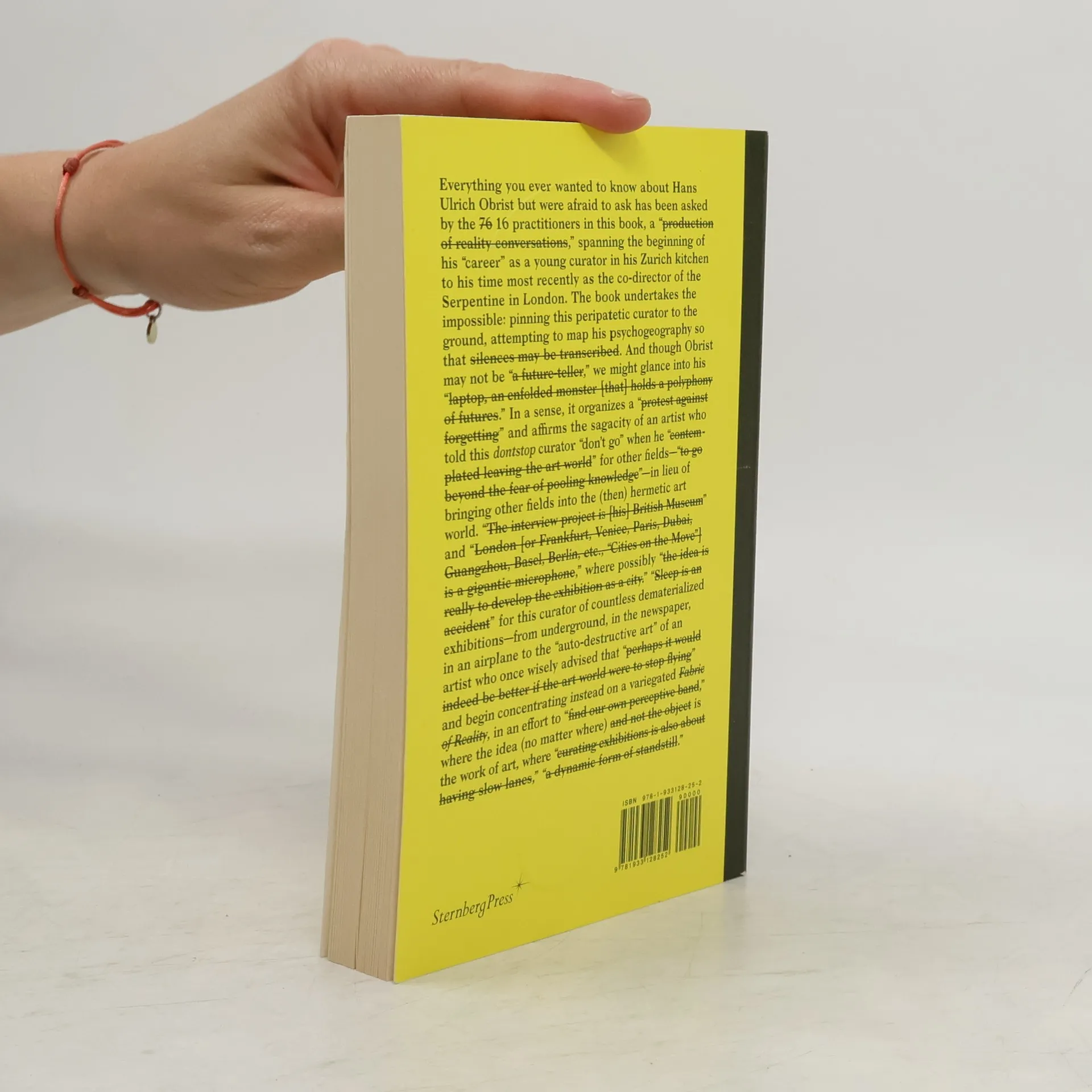 Everything you ever wanted to know about Hans Ulrich Obrist but were afraid to ask has been asked by the sixteen practitioners in this book. Spanning the beginning of his “career” as a young curator in his Zurich kitchen to his time most recently as the Co-Director of Exhibitions and Programs, and Director of International Projects at the Serpentine Gallery in London, the book is a “production of reality conversations.” It undertakes the impossible: pinning down this peripatetic curator, attempting to map his psychogeography so that silences may be transcribed. In a sense, it organizes a “protest against forgetting” and affirms the sagacity of an artist who told this dontstop curator “don't go” when he “contemplated leaving the art world” for other fields—“to go beyond the fear of pooling knowledge”—in lieu of bringing other fields into the (then) hermetic art world. Contributors Jean-Max Colard, Robert Fleck, Jefferson Hack, Nav Haq, Noah Horowitz, Sophia Krzys Acord, Brendan McGetrick, Markus Miessen, Ingo Niermann, Paul O'Neill, Philippe Parreno & Alex Poots, Juri Steiner, Gavin Wade, Enrique Walker