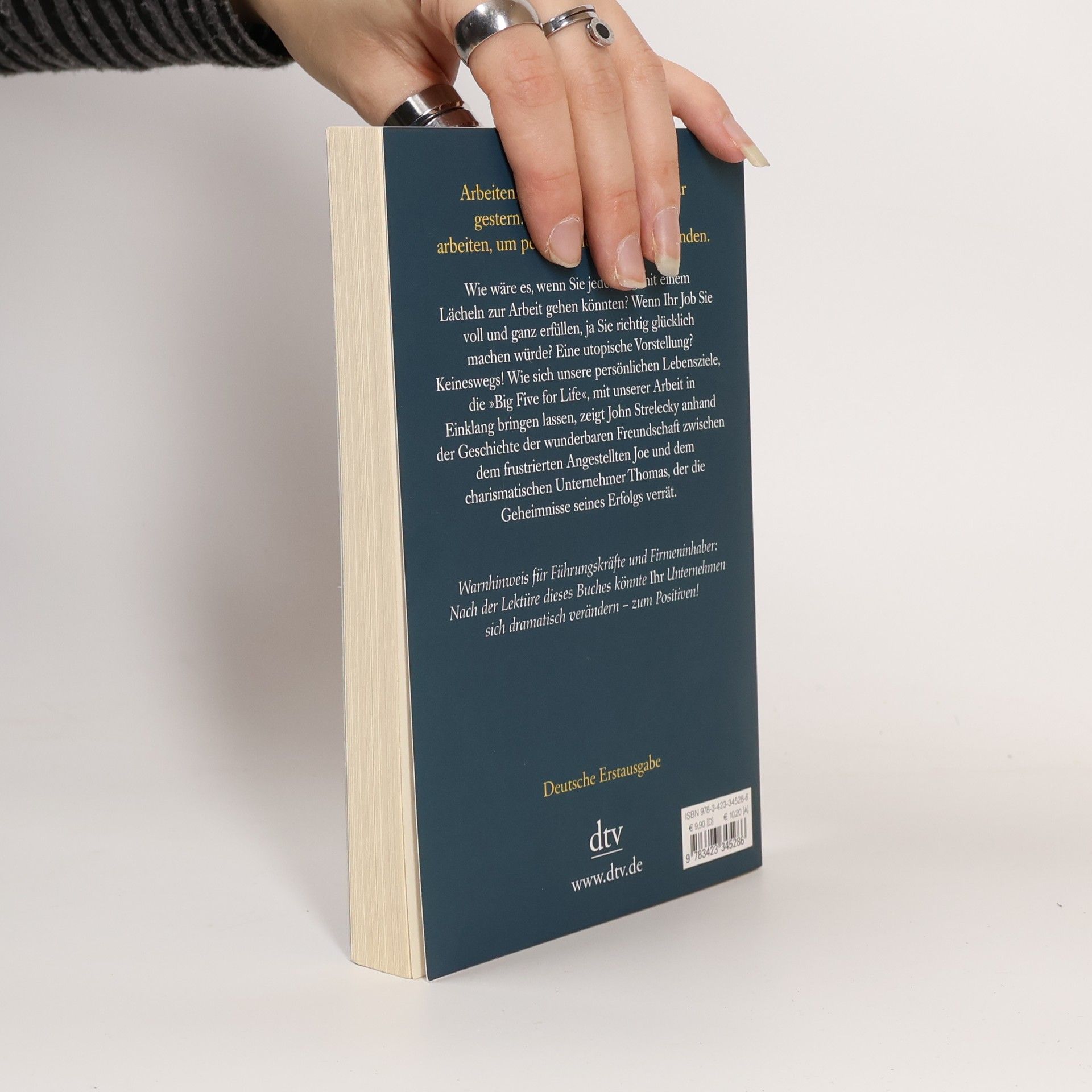 Arbeiten, um Geld zu verdienen, war gestern Durch Zufall lernt Joe, ein mit seinem Job unzufriedener Angestellter, den charismatischen Geschäftsmann Thomas kennen. Rasch entwickelt sich eine tiefe Freundschaft zwischen den beiden Männern. Thomas wird zu Joes Mentor und offenbart ihm die Geheimnisse seines Erfolgs. Er zeigt Joe, wie wichtig es ist, auch in der Arbeit erfüllt zu sein. Seine Unternehmen führt Thomas anhand zweier Leitlinien: Jeder Mitarbeiter muss seine Bestimmung sowie seine »Big Five for Life« kennen, also wissen, welche fünf Ziele er im Leben erreichen will. Diese Ideen helfen Joe, seine Wünsche zu verwirklichen. Doch Thomas will möglichst viele an seinem Wissen teilhaben lassen: Seine gesammelten Aufzeichnungen liegen hier vor Ihnen. Arbeiten, um Geld zu verdienen, war gestern. Ab heute lautet das Ziel: arbeiten, um persönliche Erfüllung zu finden.