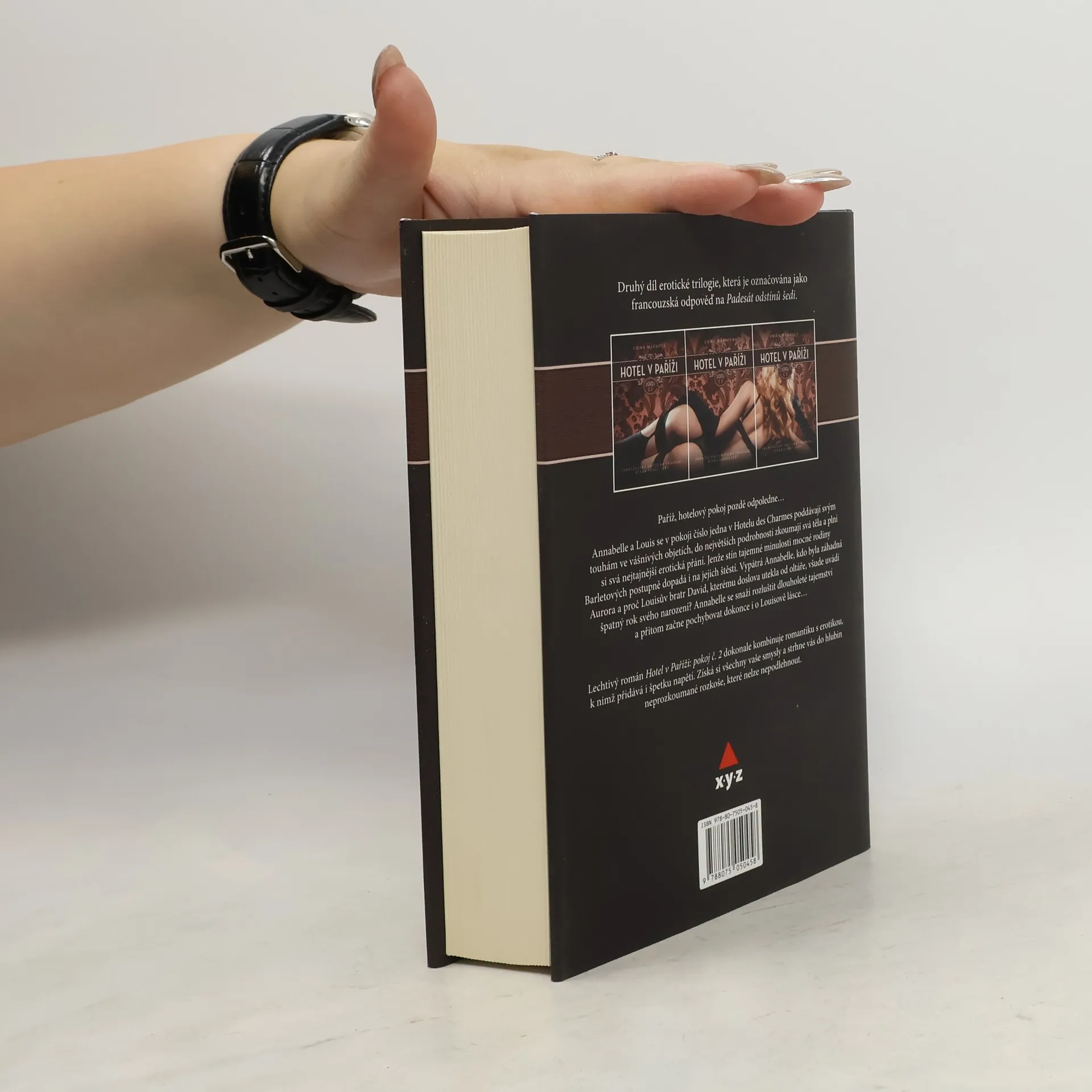 Paříž, hotelový pokoj pozdě odpoledne… Annabelle a Louis se v pokoji číslo jedna v Hotelu des Charmes poddávají svým touhám ve vášnivých objetích, do největších podrobností zkoumají svá těla a plní si svá nejtajnější erotická přání. Jenže stín tajemné minulosti mocné rodiny Barletových postupně dopadá i na i jejich štěstí... Druhý díl erotické trilogie, která je považována za francouzskou odpověď na Fifty Shades of Grey.