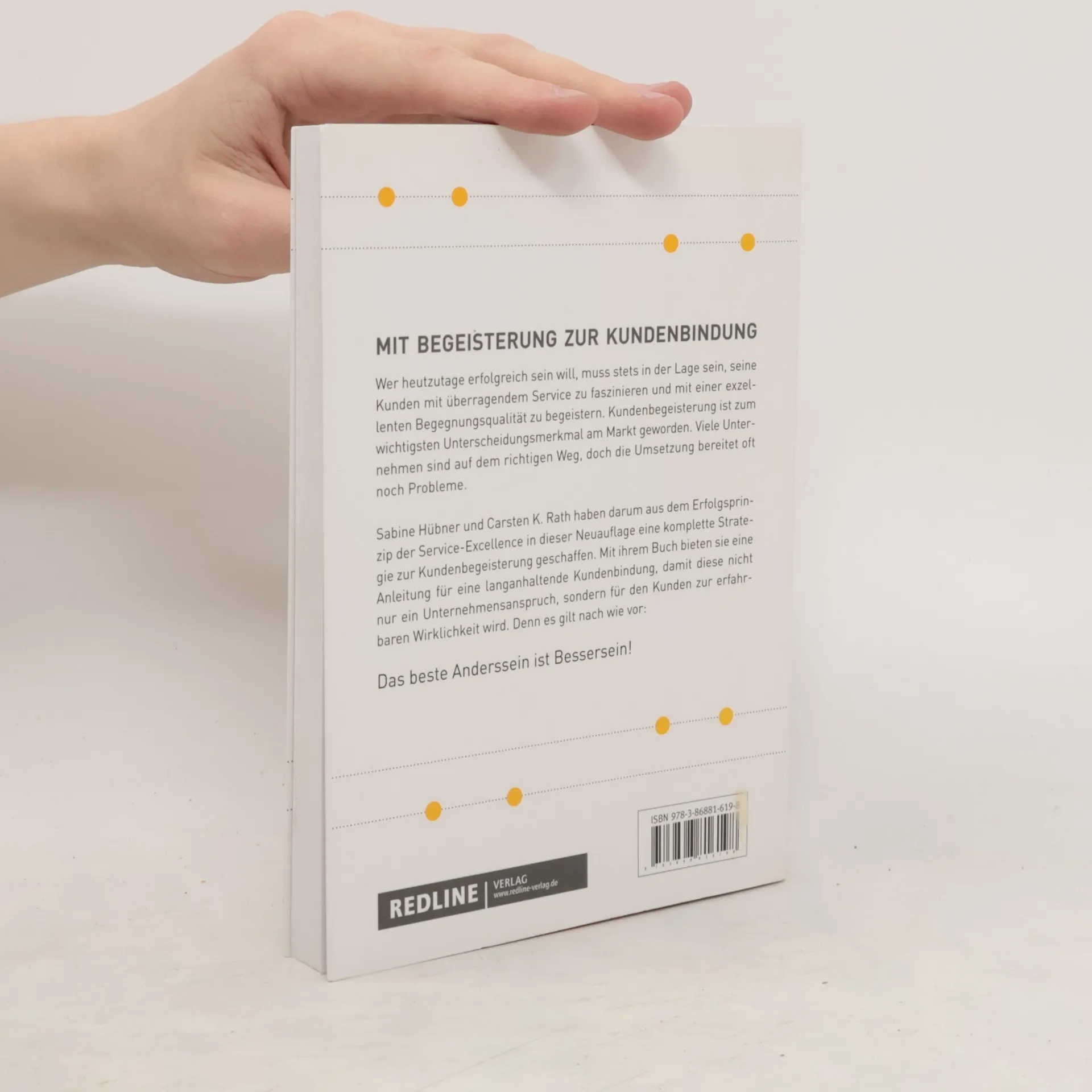 Wer heutzutage erfolgreich sein will, muss stets in der Lage sein, seine Kunden mit überragendem Service zu faszinieren und mit einer exzellenten Begegnungsqualität zu begeistern. Kundenbegeisterung ist zum wichtigsten Unterscheidungsmerkmal am Markt geworden. Viele Unternehmen sind auf dem richtigen Weg, doch die Umsetzung bereitet oft noch Probleme. Sabine Hübner und Carsten K. Rath haben darum aus dem Erfolgsprinzip der Service-Excellence in dieser Neuauflage eine komplette Strategie zur Kundenbegeisterung geschaffen. Mit ihrem Buch bieten sie eine Anleitung für eine langanhaltende Kundenbindung, damit diese nicht nur ein Unternehmensanspruch, sondern für den Kunden zur erfahrbaren Wirklichkeit wird. Denn es gilt nach wie vor: Das beste Anderssein ist Bessersein!