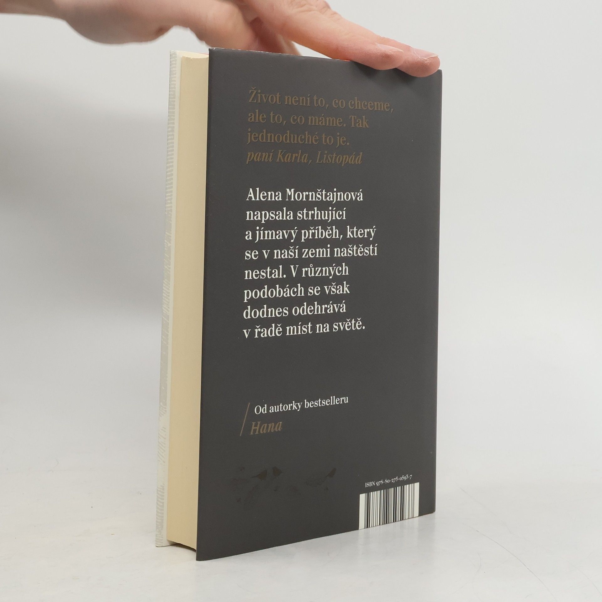 Zeptali jste se někdy sami sebe, jaký by asi byl váš život, kdyby to v listopadu 1989 dopadlo všechno úplně jinak? Jaké by asi byly naše osudy, kdyby komunismus neskončil a my bychom zůstali za železnou oponou oddělující nás od světa i jeden od druhého? Jedna z nejúspěšnějších českých spisovatelek Alena Mornštajnová opět překvapuje; její nový román je dramatickým příběhem obyčejné rodiny, kterou velké dějiny během jedné listopadové noci rozdělí a postaví proti sobě. Sledujeme příběh Marie Hajné, která je kvůli účasti na demonstracích zatčena a odsouzena ke dvaceti letům vězení. Ví, že už nejspíš nikdy neuvidí vyrůstat své děti, a při životě ji udržují jen dopisy. A taky naděje, že se nakonec přece jen shledají... Vedle toho se odvíjí příběh dívenky Magdaleny, která je odebrána rodičům a umístěna do „ozdravovny“, ve které se vychovávají nové komunistické kádry. Jejich osudy se jednoho dne protnou, ale zcela jinak, než si obě představovaly a přály.
