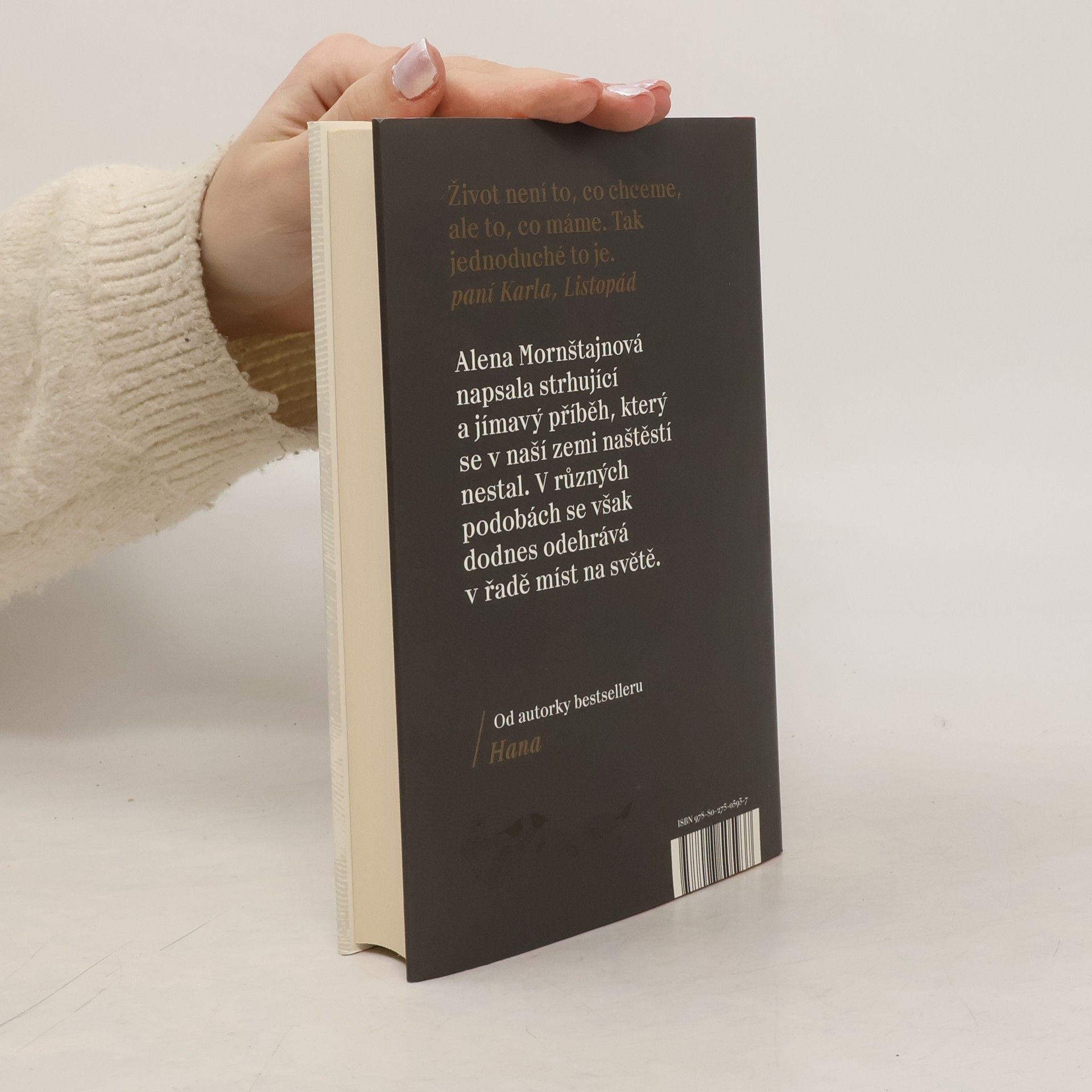 Zeptali jste se někdy sami sebe, jaký by asi byl váš život, kdyby to v listopadu 1989 dopadlo všechno úplně jinak? Jaké by asi byly naše osudy, kdyby komunismus neskončil a my bychom zůstali za železnou oponou oddělující nás od světa i jeden od druhého? Jedna z nejúspěšnějších českých spisovatelek Alena Mornštajnová opět překvapuje; její nový román je dramatickým příběhem obyčejné rodiny, kterou velké dějiny během jedné listopadové noci rozdělí a postaví proti sobě. Sledujeme příběh Marie Hajné, která je kvůli účasti na demonstracích zatčena a odsouzena ke dvaceti letům vězení. Ví, že už nejspíš nikdy neuvidí vyrůstat své děti, a při životě ji udržují jen dopisy. A taky naděje, že se nakonec přece jen shledají... Vedle toho se odvíjí příběh dívenky Magdaleny, která je odebrána rodičům a umístěna do „ozdravovny“, ve které se vychovávají nové komunistické kádry. Jejich osudy se jednoho dne protnou, ale zcela jinak, než si obě představovaly a přály.