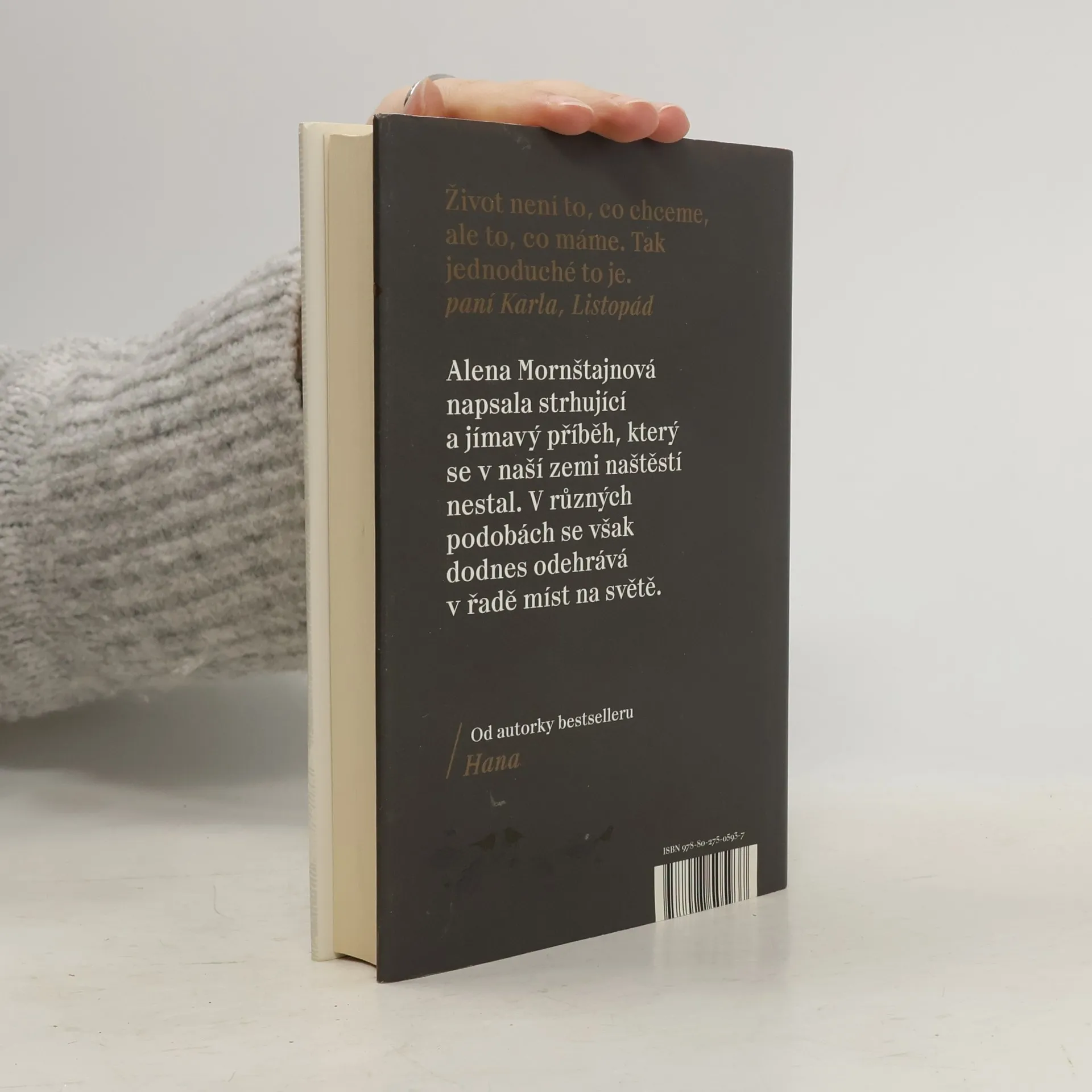 Zeptali jste se někdy sami sebe, jaký by asi byl váš život, kdyby to v listopadu 1989 dopadlo všechno úplně jinak? Jaké by asi byly naše osudy, kdyby komunismus neskončil a my bychom zůstali za železnou oponou oddělující nás od světa i jeden od druhého? Jedna z nejúspěšnějších českých spisovatelek Alena Mornštajnová opět překvapuje; její nový román je dramatickým příběhem obyčejné rodiny, kterou velké dějiny během jedné listopadové noci rozdělí a postaví proti sobě. Sledujeme příběh Marie Hajné, která je kvůli účasti na demonstracích zatčena a odsouzena ke dvaceti letům vězení. Ví, že už nejspíš nikdy neuvidí vyrůstat své děti, a při životě ji udržují jen dopisy. A taky naděje, že se nakonec přece jen shledají... Vedle toho se odvíjí příběh dívenky Magdaleny, která je odebrána rodičům a umístěna do „ozdravovny“, ve které se vychovávají nové komunistické kádry. Jejich osudy se jednoho dne protnou, ale zcela jinak, než si obě představovaly a přály.