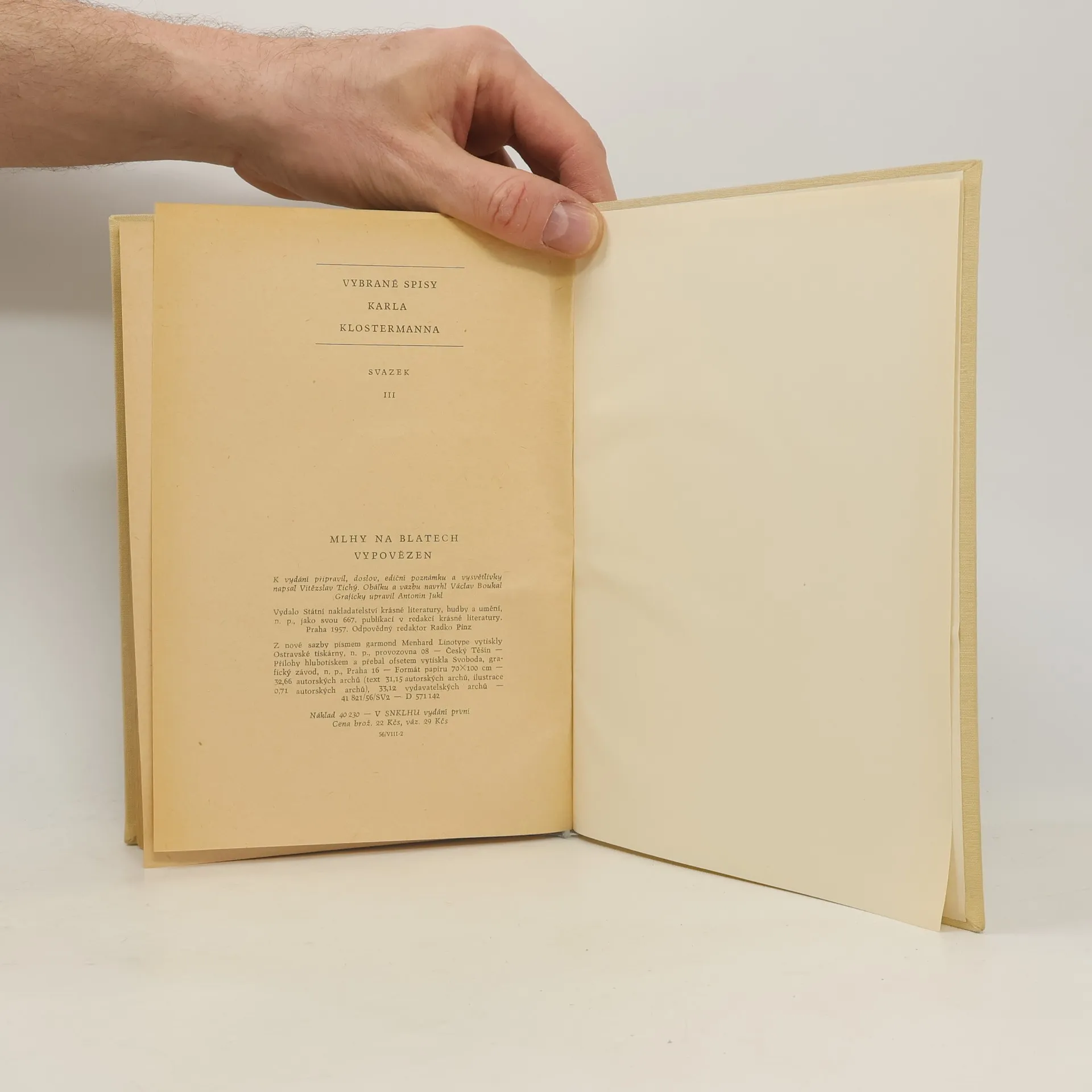 There are currently of book Mlhy na blatech. Vypovězen (1957) in stock.