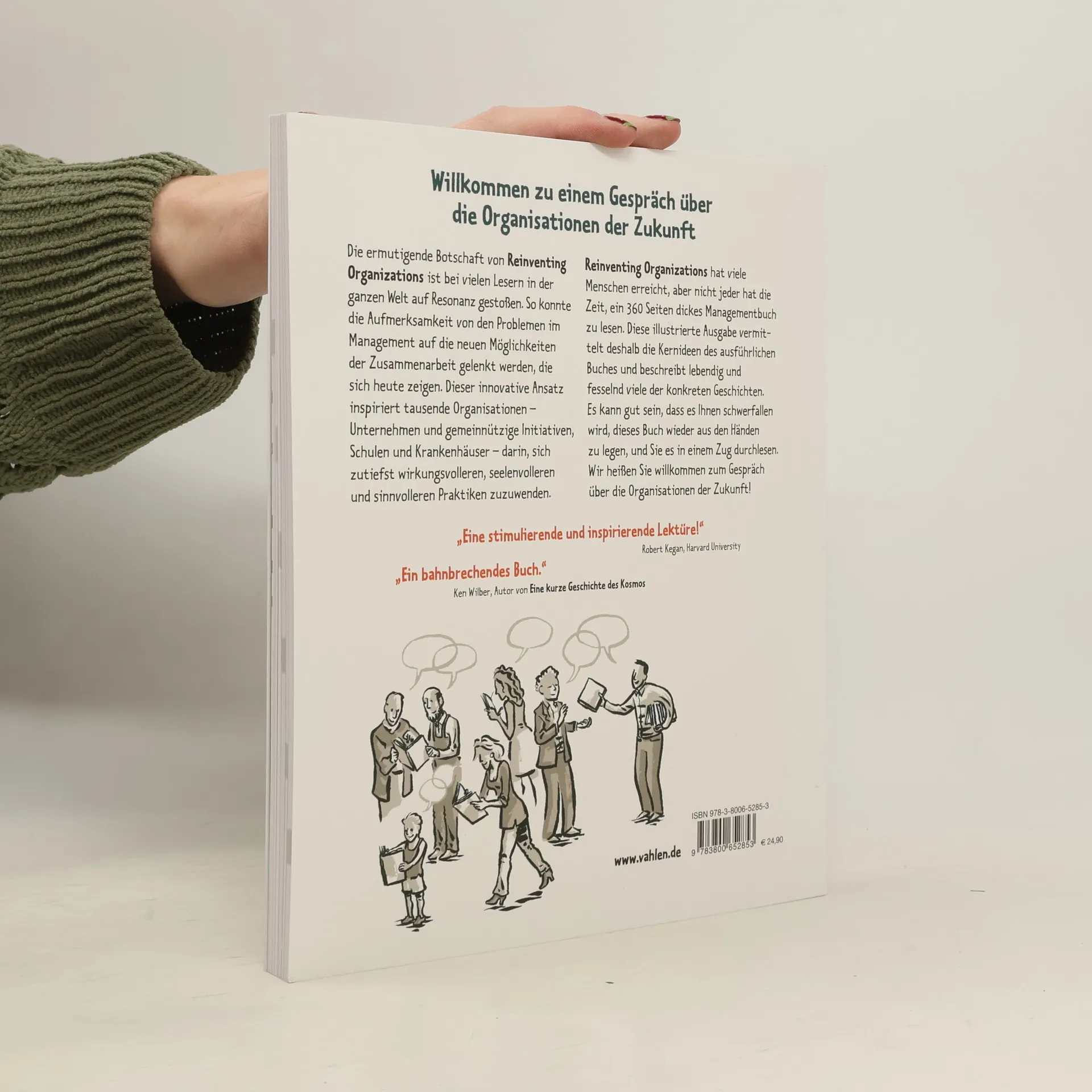 Willkommen zu einem Gespräch über die Organisationen der Zukunft. Die ermutigende Botschaft von Reinventing Organizations ist bei vielen Lesern in der ganzen Welt auf Resonanz gestoßen. So konnte die Aufmerksamkeit von den Problemen im Management auf die neuen Möglichkeiten der Zusammenarbeit gelenkt werden, die sich heute zeigen. Dieser innovative Ansatz inspiriert tausende Organisationen – Unternehmen und gemeinnützige Initiativen, Schulen und Krankenhäuser – darin, sich zutiefst wirkungsvolleren, seelenvolleren und sinnvolleren Praktiken zuzuwenden. Reinventing Organizations hat viele Menschen erreicht, aber nicht jeder hat die Zeit, ein 360 Seiten dickes Managementbuch zu lesen. Diese illustrierte Ausgabe vermittelt deshalb die Kernideen des ausführlichen Buches und beschreibt lebendig und fesselnd viele der konkreten Geschichten. Es kann gut sein, dass es Ihnen schwerfallen wird, dieses Buch wieder aus den Händen zu legen, und Sie es in einem Zug durchlesen. Wir heißen Sie willkommen zum Gespräch über die Organisationen der Zukunft! „Eine stimulierende und inspirierende Lektüre!“ Robert Kegan, Harvard University „Ein bahnbrechendes Buch.“ Ken Wilber, Autor von Eine kurze Geschichte des Kosmos