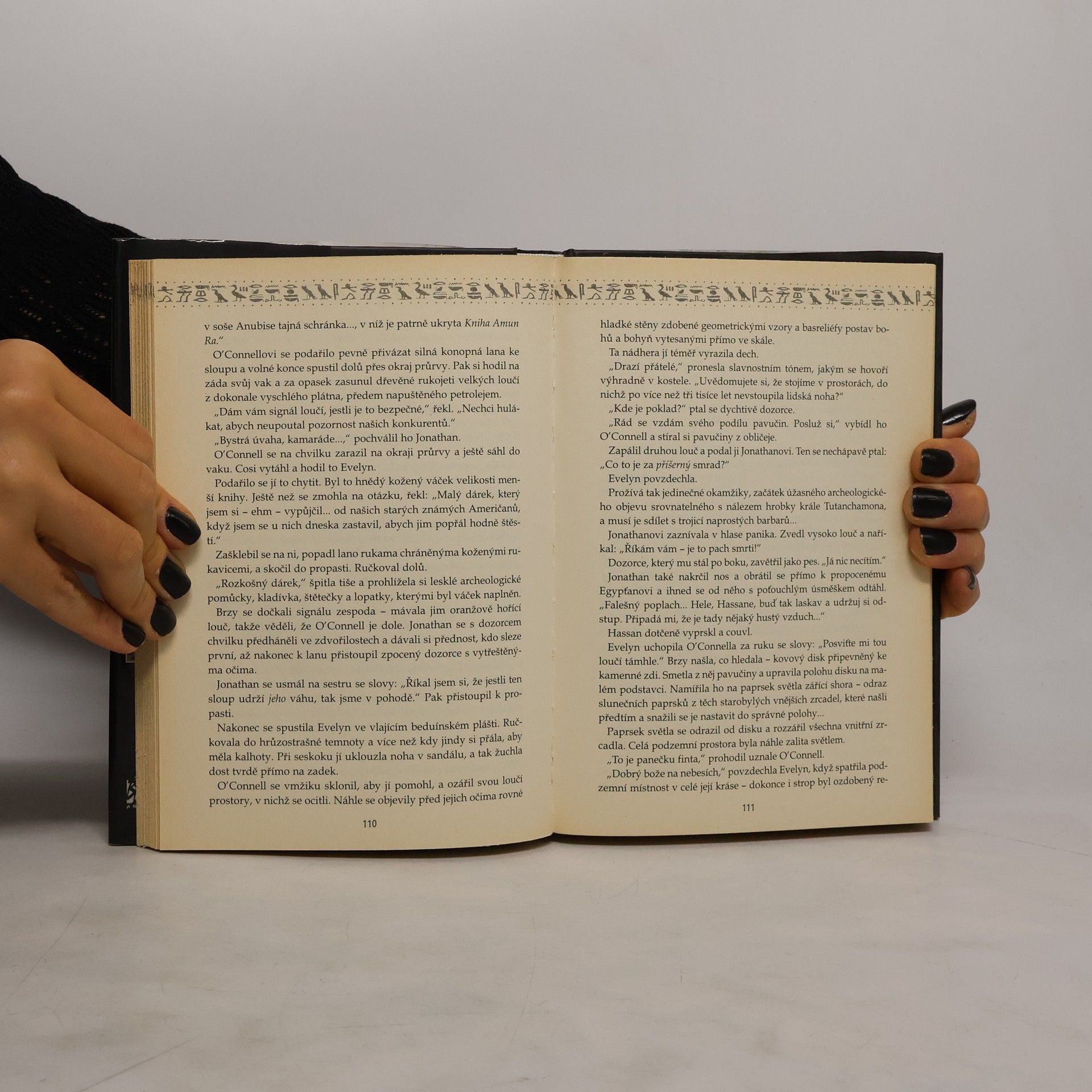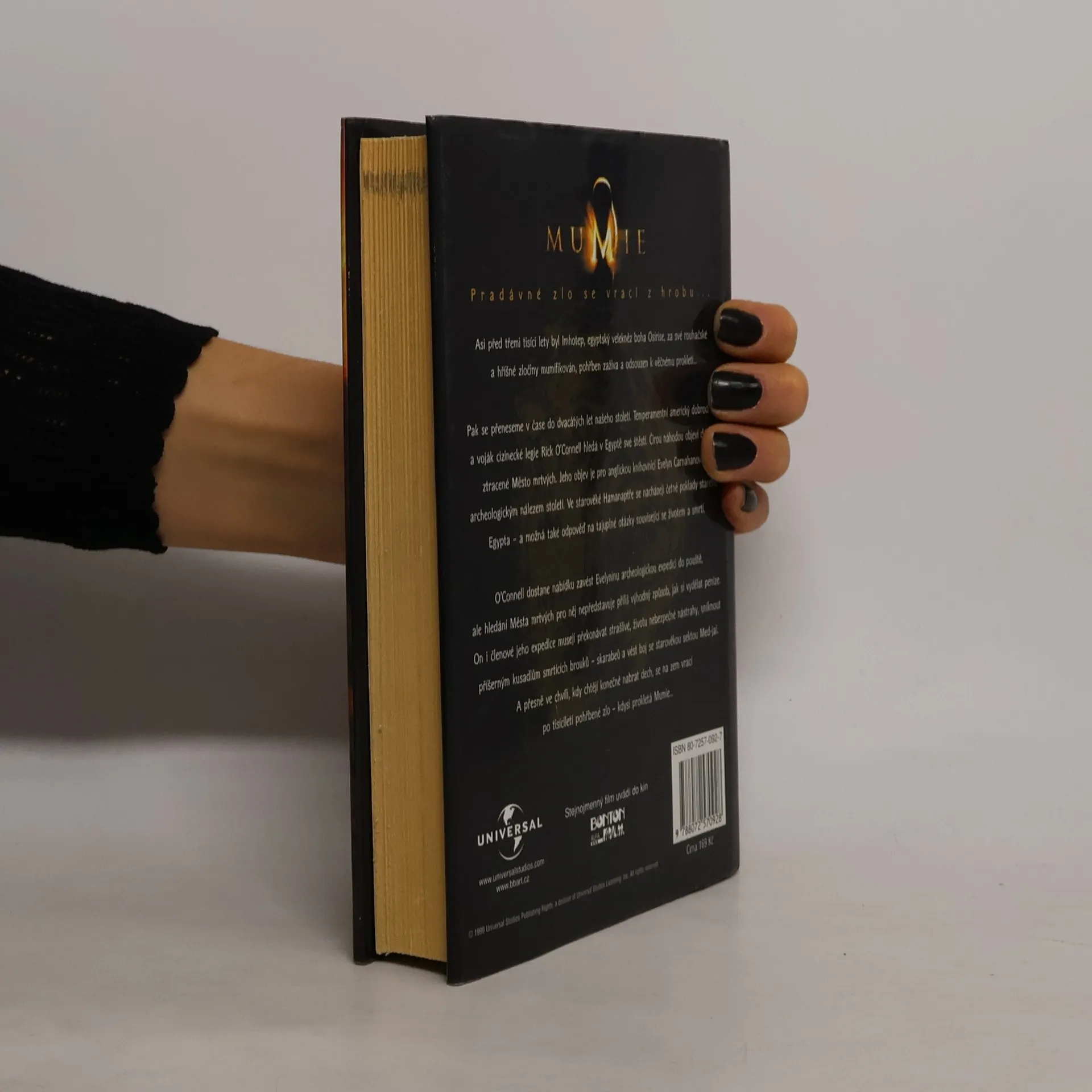 Podle filmového scénáře Stephena Sommerse. Pradávné zlo se vrací z hrobu… Asi před třemi tisíci lety byl Imhotep, egyptský velekněz boha Osirise, za své rouhačské a hříšné zločiny mumifikován, pohřben zaživa a odsouzen k věčnému prokletí… Pak se přeneseme v čase do dvacátých let našeho století. Temperamentní americký dobrodruh a voják cizinecké legie Rick O´Connell hledá v Egyptě své štěstí. Čirou náhodou objeví dávno ztracené Město mrtvých. Jeho objev je pro anglickou knihovnici Evelyn Carnahanovou archeologický nález století. Ve starověké Hamanaptře se nacházejí četné poklady starého Egypta – a možná také odpověď na tajuplné otázky související se životem a smrtí. O´Connell dostane nabídku zavést Evelininu archeologickou expedici do pouště, ale hledání Města mrtvých pro něj nepředstavuje příliš výhodný způsob, jak si vydělat peníze. On i členové jeho expedice musejí překonávat strašlivé, životu nebezpečné nástrahy, uniknout příšerným kusadlům smrtících brouků – skarabeů a vést boj se starověkou sektou med-jai. A přesně ve chvíli, kdy chtějí konečně nabrat dech, se na zem vrací po tisíciletí pohřbené zlo – kdysi prokletá Mumie…