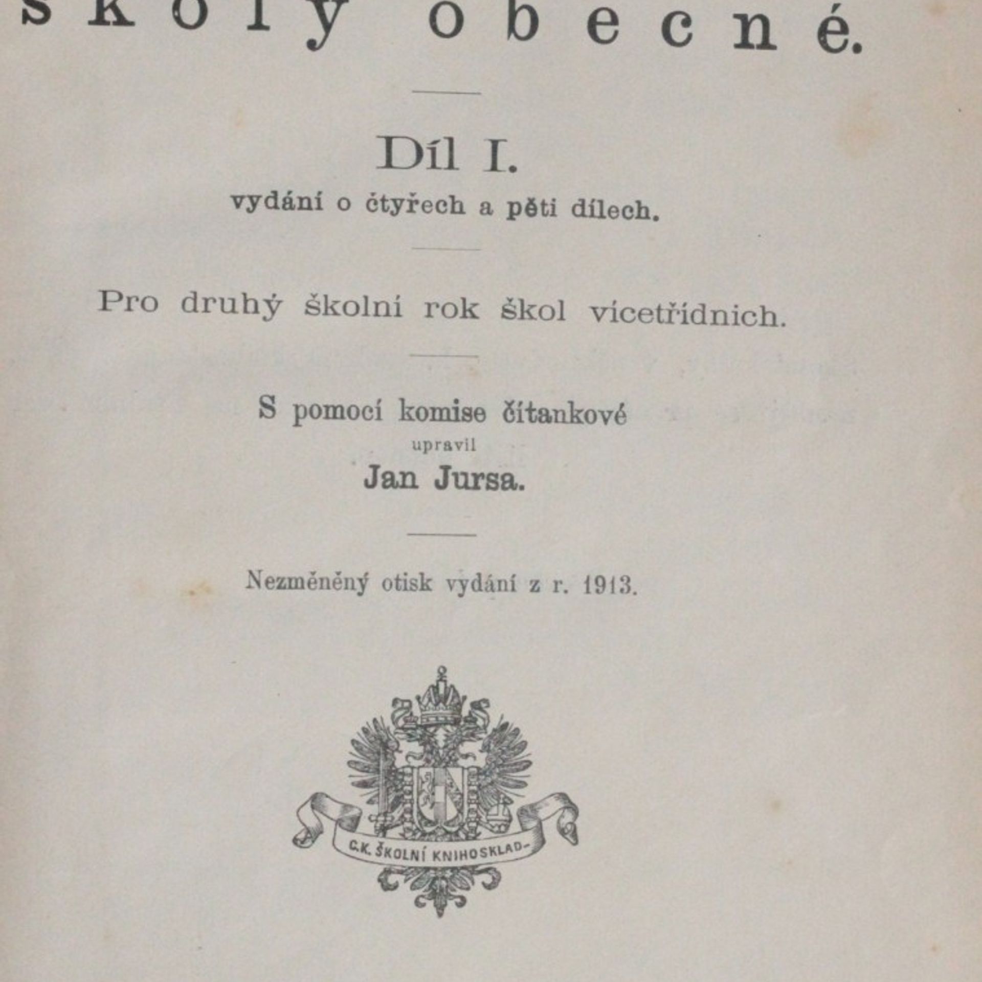 Čítanka pro školy obecné. Díl 1. vydání dvojdílného, pro 2., 3. a 4. školní rok škol jednotřídních nedílných a trojtřídních, Jan Jursa
