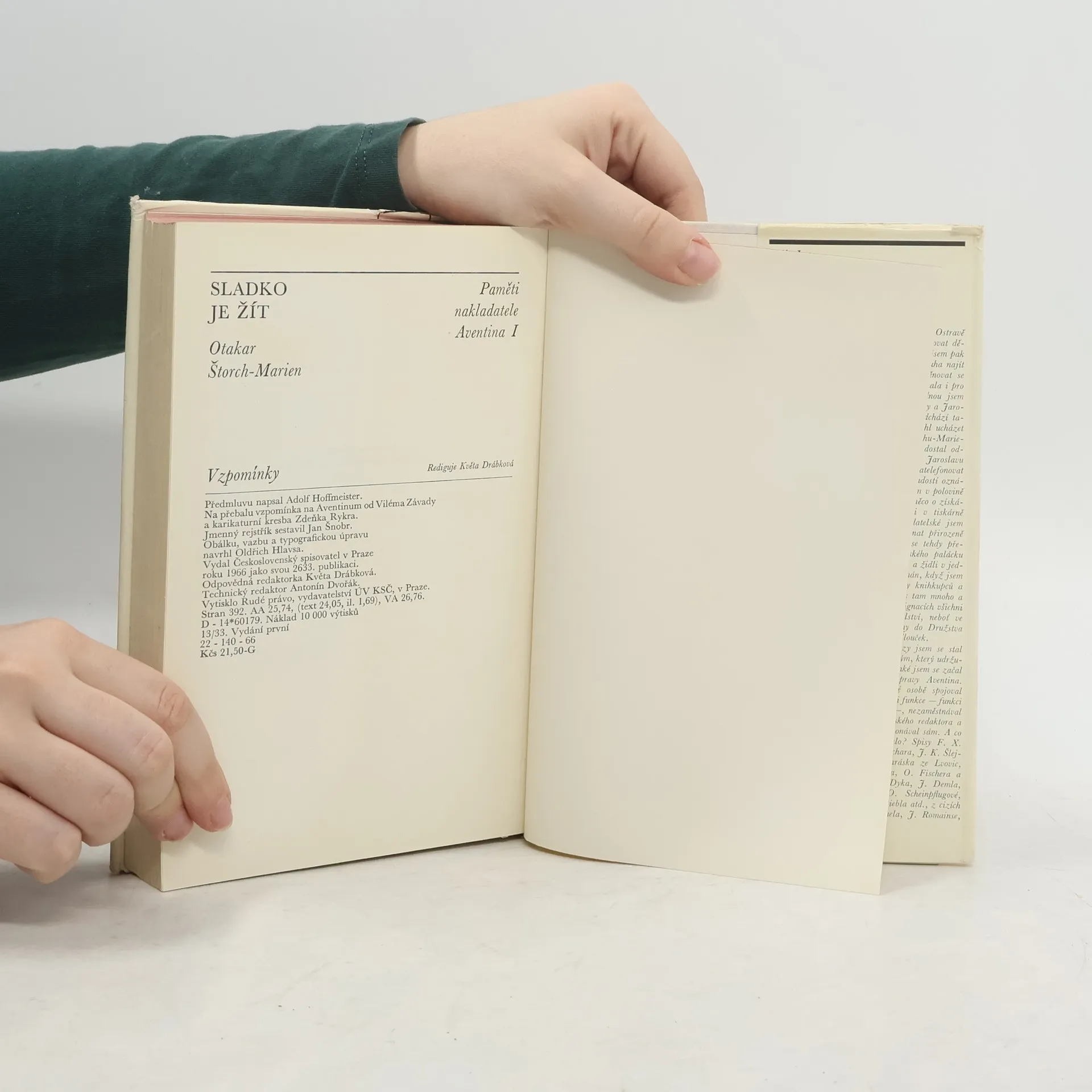Sladko je žít. Paměti nakladatele Aventina I, Otakar Štorch-Marien, Adolf Hoffmeister