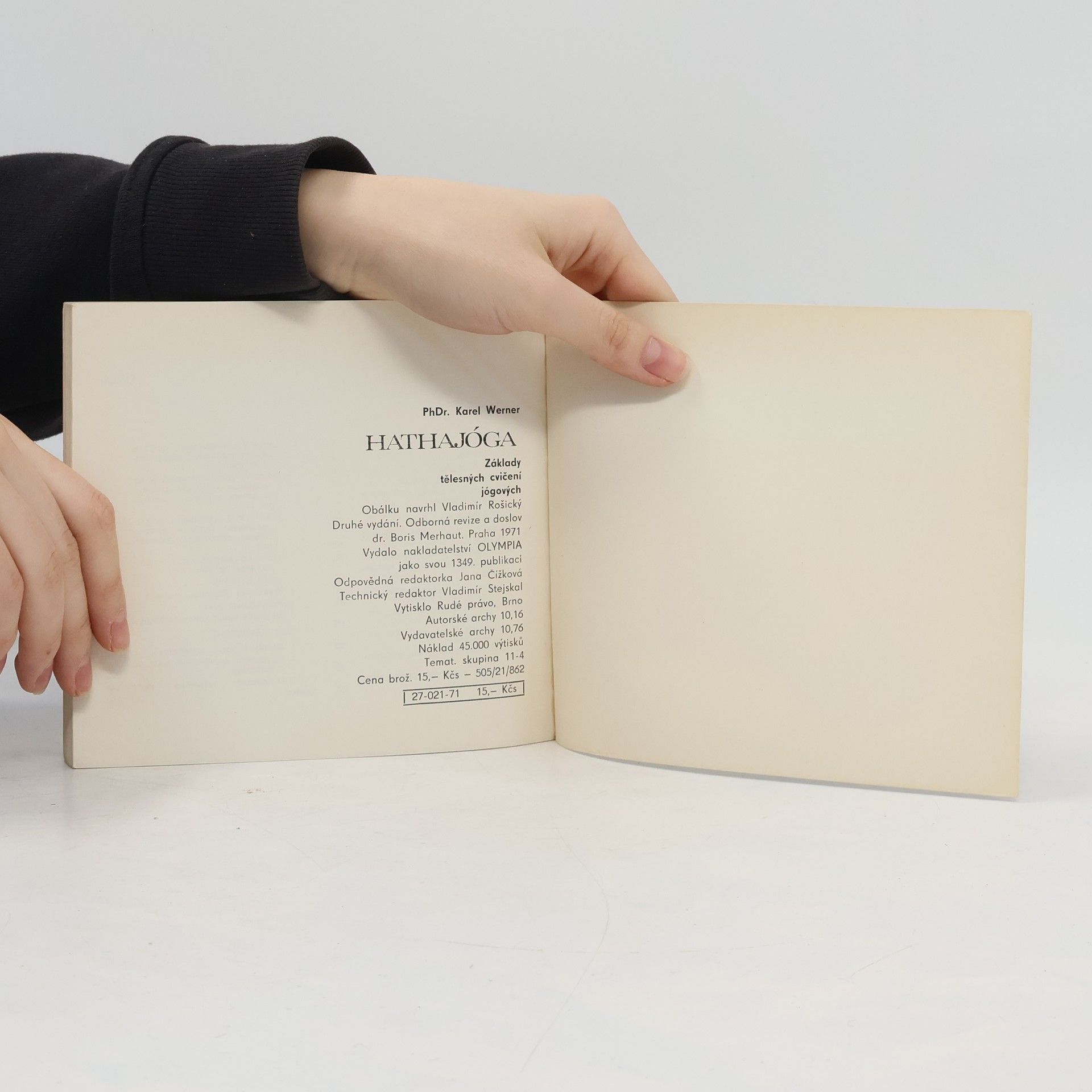 Podtitul: Základy tělesných cvičení jógických. První česká kniha, která pojednává o háthajóze jako o ucelené tělovýchovné soustavě. Úvodní část je stručné teoretické pojednání o hathajóze jako takové, následuje praktická část obsahují kurz hathajógy v 10ti lekcích s fotografiemi a podrobným popisem jednotlivých ásan (cviků).