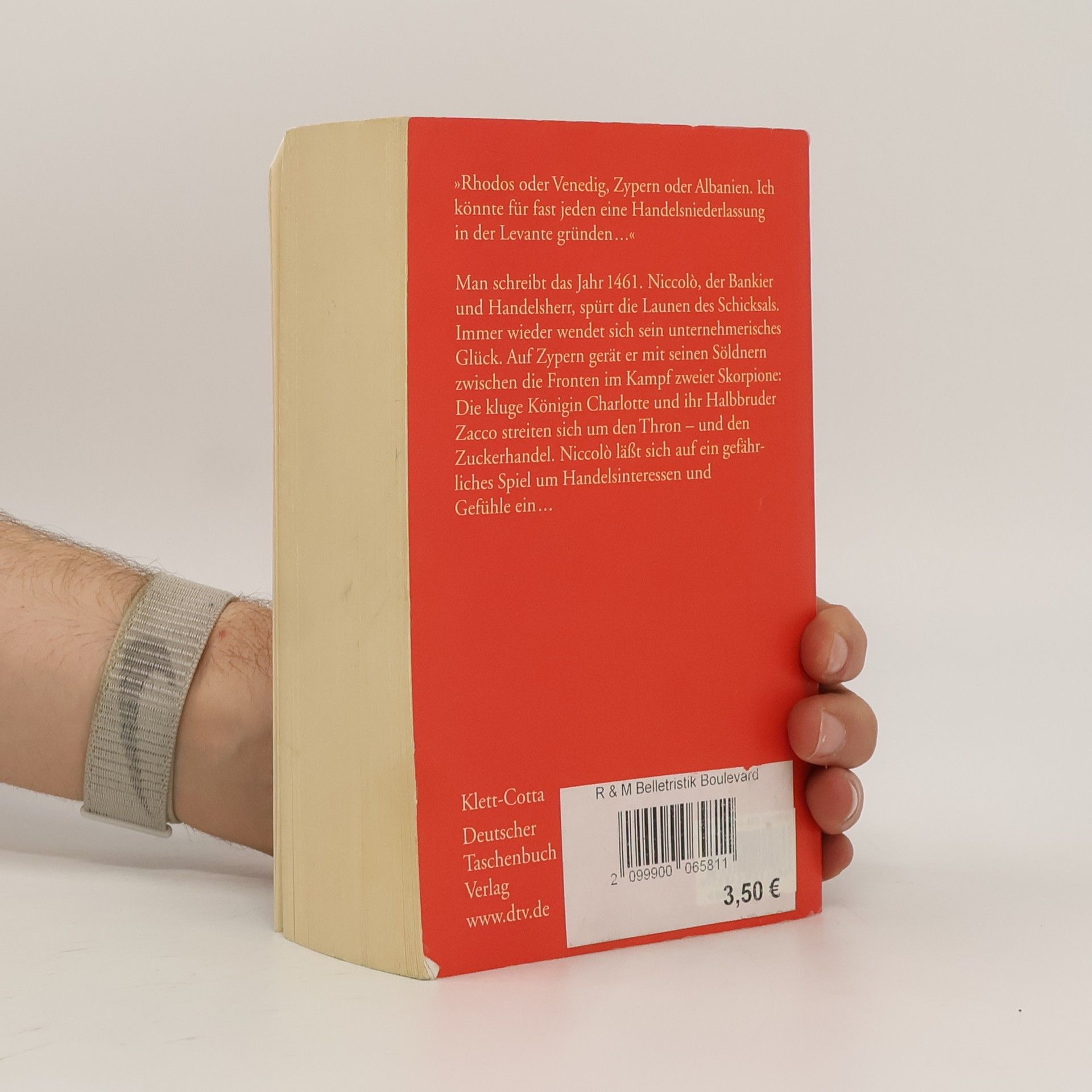 »Was ist Handel anderes als ein Spiel?« „Rhodos oder Venedig, Zypern oder Albanien. Ich könnte für fast jeden eine Handelsniederlassung in der Levante gründen ...“ Man schreibt das Jahr 1462. Niccolò wird gegen seinen Willen nach Zypern gebracht. Mit seinen Söldnern gerät er zwischen die Fronten im Kampf zweier Skorpione: Die kluge Königin Charlotte und ihr Halbbruder Zacco streiten sich um den Thron - und den Zuckerhandel. Während Charlotte von den Johanniterrittern unterstützt wird, versucht Zacco Niccolò auf seine Seite zu ziehen. Niccolò läßt sich auf ein gefährliches Spiel um Handelsinteressen und Gefühle ein