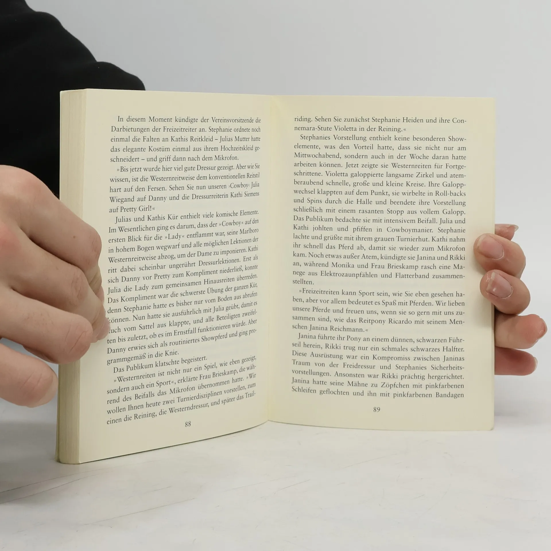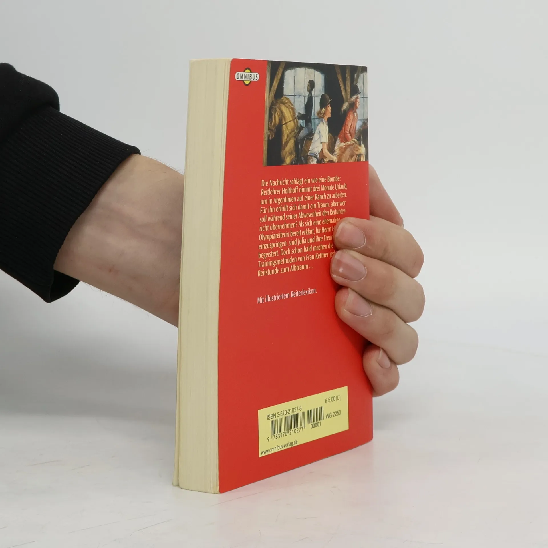Die neue Reitlehrerin setzt auf strenge Disziplin. Aber Sport soll doch auch Spaß machen! Als Reitlehrer Holthoff in Urlaub geht, übernimmt eine ehemalige Olympiareiterin den Unterricht. Zuerst sind alle Schüler begeistert und sehen sich selbst schon als Teilnehmer der nächsten Spiele. Doch um dieses Niveau zu erreichen, heißt es: hart arbeiten! Besonders Kathi und Janina leiden unter dem Erfolgsdruck. Julia macht sich Sorgen um die Freundinnen. Etwas muss geschehen! Weitere Bücher im Titelverzeichnis. 9 Julias Reitlehrer Herr Holthoff nimmt drei Monate Urlaub, um in Argentinien auf einer Ranch zu arbeiten. Für ihn erfüllt sich damit ein Traum, aber wer soll während seiner Abwesenheit den Reitunterricht übernehmen? Als sich eine ehemalige Olympiareiterin bereit erklärt einzuspringen, sind Julia und ihre Freundinnen begeistert. Doch die neuen Trainingsmethoden von Frau Kettner machen jede Reitstunde zum Albtraum. Mit illustriertem Reiterlexikon.