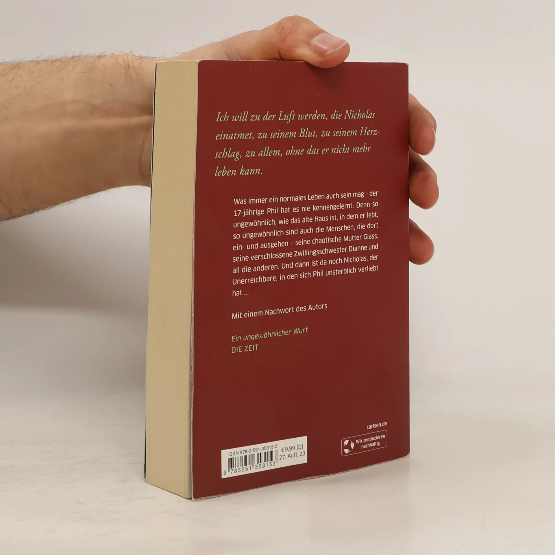 Was immer ein normales Leben auch sein mag – der 17-jährige Phil hat es nie kennengelernt. Denn so ungewöhnlich wie das alte Haus ist, in dem er lebt, so ungewöhnlich sind auch die Menschen, die dort ein- und ausgehen – seine chaotische Mutter Glass, seine verschlossene Zwillingsschwester Dianne und all die anderen. Und dann ist da noch Nicholas, der Unerreichbare, in den Phil sich unsterblich verliebt.