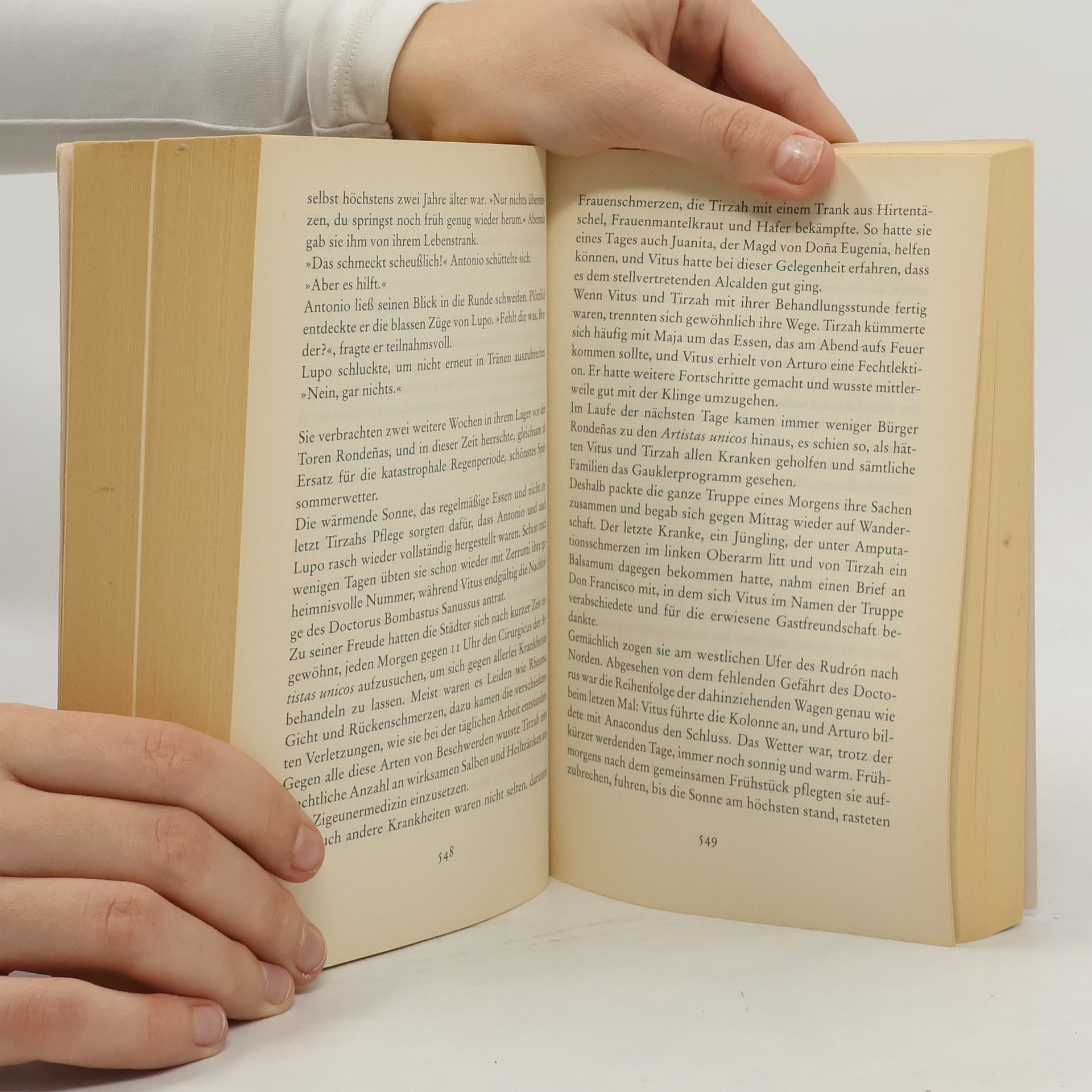 Anno 1576: Im spanischen Zisterzienserkloster Campodios stirbt der von allen verehrte und geliebte Abt. Kurz vor seinem Tod gesteht er seinem Lieblingsschüler Vitus ein Geheimnis: Vitus ist ein Findelkind, das nach seiner Geburt vor den Toren des Klosters ausgesetzt wurde. Ein kostbares rotes Damasttuch, in das er als Baby eingehüllt war, ist der einzige Hinweis auf seine Herkunft, und das Wappen deutet darauf hin, dass seine Familie in England leben könnte. Vitus begibt sich auf die Suche nach seinen Angehörigen. Schon bald muss er seine medizinischen Kenntnisse anwenden, macht sich als eine Art Wunderheiler einen Namen in ganz Spanien. Nach schwersten Prüfungen setzt er seinen Weg Richtung Santander fort, um von dort mit dem Schiff nach England überzusetzen ...