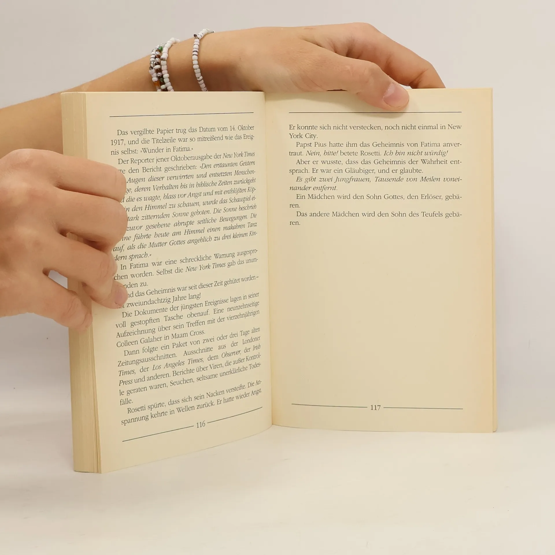 Als die 16jährige Kathleen Beavier plötzlich schwanger wird, sind ihre Eltern entsetzt. Doch noch mehr verstört sie die beharrliche Aussage ihrer Tochter, niemals mit einem Jungen geschlafen zu haben. Und auch die Untersuchungen mehrerer Ärzte ergeben ein eindeutiges Bild: Kathleen ist immer noch Jungfrau! Der Bostoner Kardinal beauftragt die ehemalige Nonne Anne Fitzgerald, der Sache auf den Grund zu gehen. Denn vor achtzig Jahren wurde die Geburt eines göttlichen Kindes prophezeit. Auch der Vatikan schickt einen Mitarbeiter, Nicholas Rosetti. Dieser ist Anne Fitzgerald in einem voraus: Er weiß, daß in Irland eine vierzehnjährige Jungfrau ebenfalls ein Kind erwartet. Und er weiß auch, dass eines der beiden Kinder der Sohn Gottes, das andere das Kind des Satans ist ...