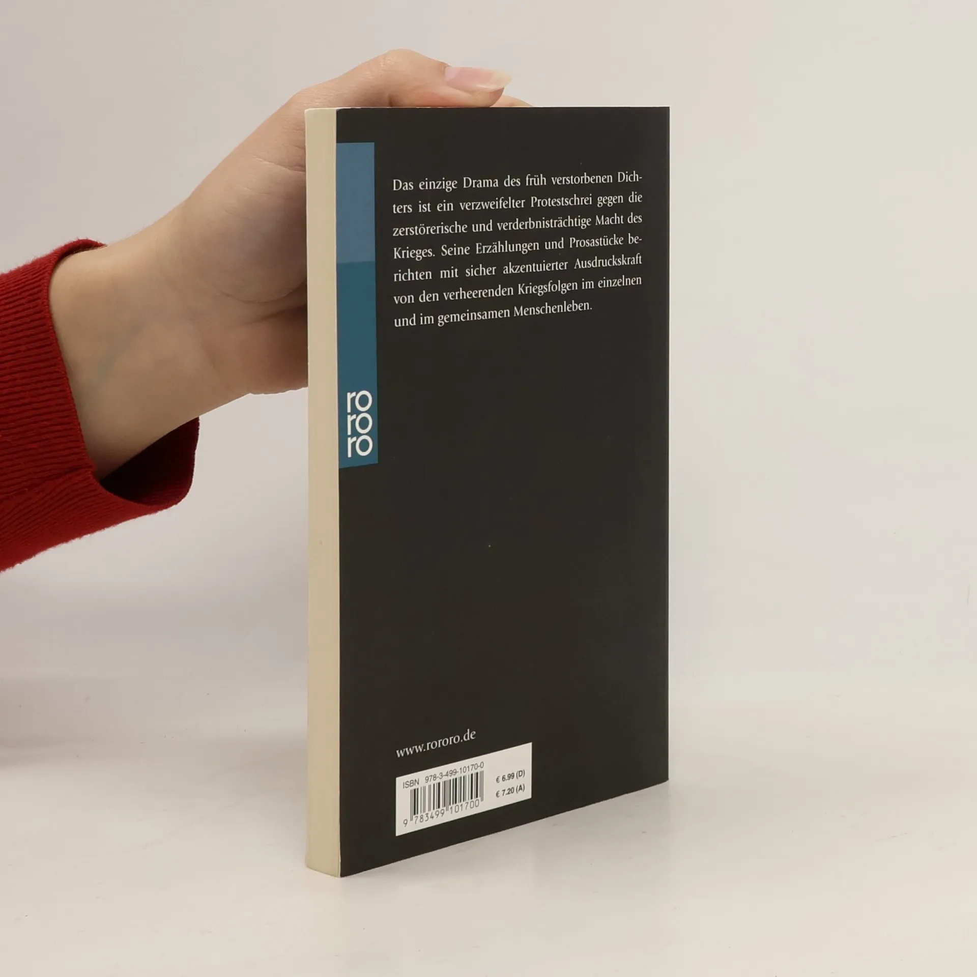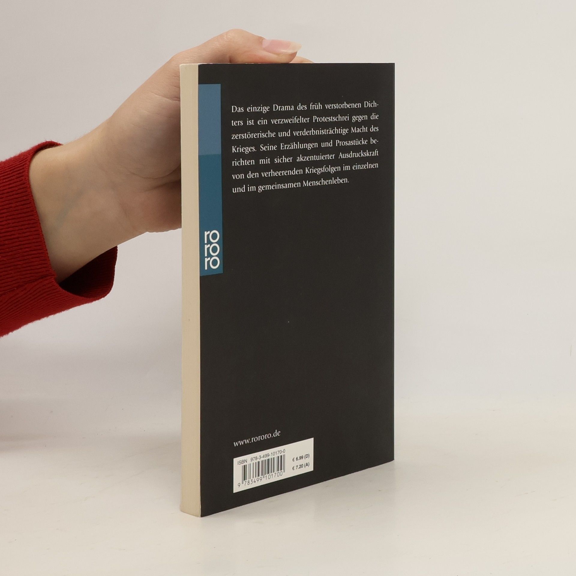 Das einzige Drama des früh verstorbenen Dichters ist ein verzweifelter Protestschrei gegen die zerstörerische und verderbnisträchtige Macht des Krieges. Seine Erzählungen und Prosastücke berichten mit sicher akzentuierter Ausdruckskraft von den verheerenden Kriegsfolgen im einzelnen und im gemeinsamen Menschenleben.
