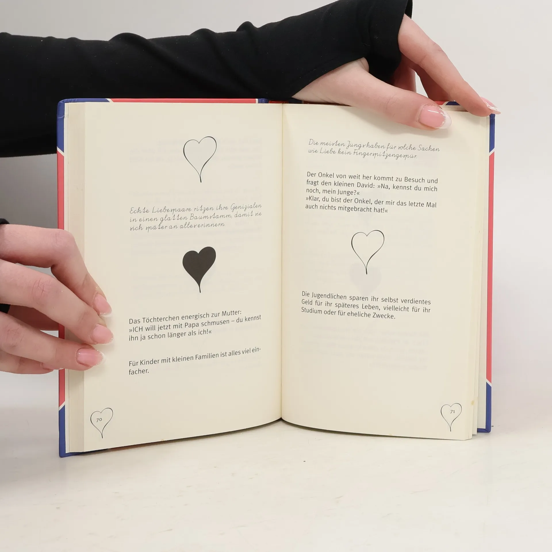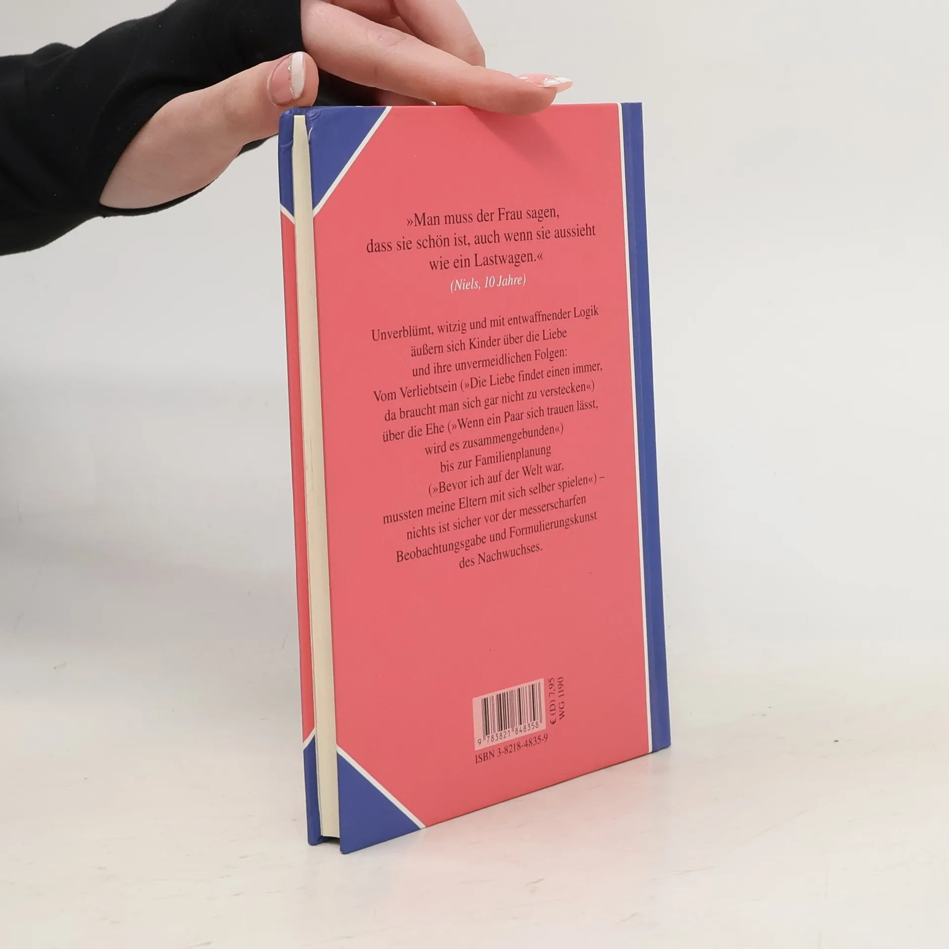 Unverblümt, witzig und mit entwaffnender Logik äußern sich Kinder über die Liebe und ihre unvermeidlichen Folgen, denn: Wenn du eine Frau küßt, musst du sie heiraten und mit ihr Kinder kriegen. So ist das eben. Vom Flirten (Beim ersten Rendezvous sagen sie sich interessante Lügen, dadurch sind sie dann bereit, ein zweites Rendezvous zu haben) über den Wert der Ehe (Seit unsere Lehrerin einen Ehemann besitzt, sind wir glücklich) bis hin zur Familienplanung (Die männlichen Eizellen produzieren Spearmint): Nichts ist sicher vor der messerscharfen Beobachtungsgabe und Formulierungskunst des Nachwuchses.