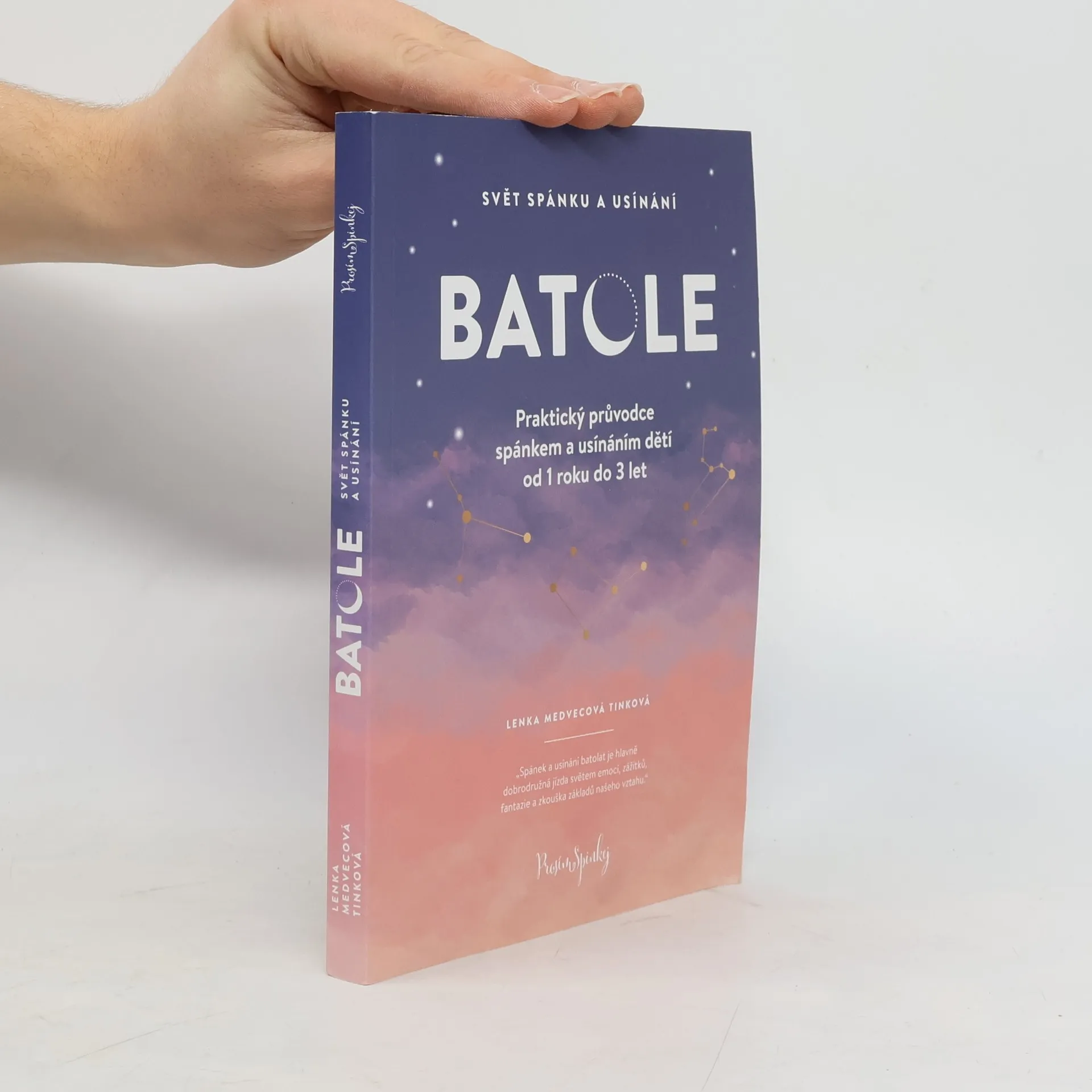 Praktický průvodce spánkem a usínáním dětí od 1 - 3 let. Nejdramatičtějším ve vývoji člověka je prý přechod od miminka k dítěti. Právě batolecí období mezi 1-3 rokem je proto plný nových výzev také ve spánku a usínání. Už to nejsou úplně malá miminka, ale přesto ještě nejsou samostatnými dětmi. Čeká je spousta změn.Někdy mám pocit, jakoby v celém tom laskavém přístupu k miminkům chybělo další pokračování. Je nám jasné, že miminko nepláče bez příčiny, že potřebuje naši péči, i naši reakci na jeho pláč. Víme, jak důležité je dotýkat se ho, mazlit, nosit, mít ho u sebe na blízku. Jenže jak je to se staršími dětmi?Proč se tak brání usínání, když na něm je zjevně vidět únava?Dá se vůbec posunout velmi pozdní usínání?Jak ukončit - změnit styl usínání, kojením či nošením, citlivě nebo to přijde samo?Jak změnit styl usínání, které sice dítěti vyhovuje, ale nás už ničí a potřebujeme akutní změnu? Kdy už dítě nepotřebuje přes den spát?Proč se vlastně ještě některé děti mezi 1-3 rokem budí nebo se právě v tomto období budit začnou?Jak uspávat dvě děti najednou – jde to vůbec?Dá se sladit spánek sourozenců?Takové dotazy dostávám denně. Proto teď čtete tyto řádky. Odpovědi se nevejdou do jednoho článku. Sepsala jsem vám vše do knihy, propletla příběhy z praxe a doplnila praktickými tipy, terapeutickými pohádkami, večerním uvolňujícím cvičením nebo také třeba akčním plánem pro maminky.