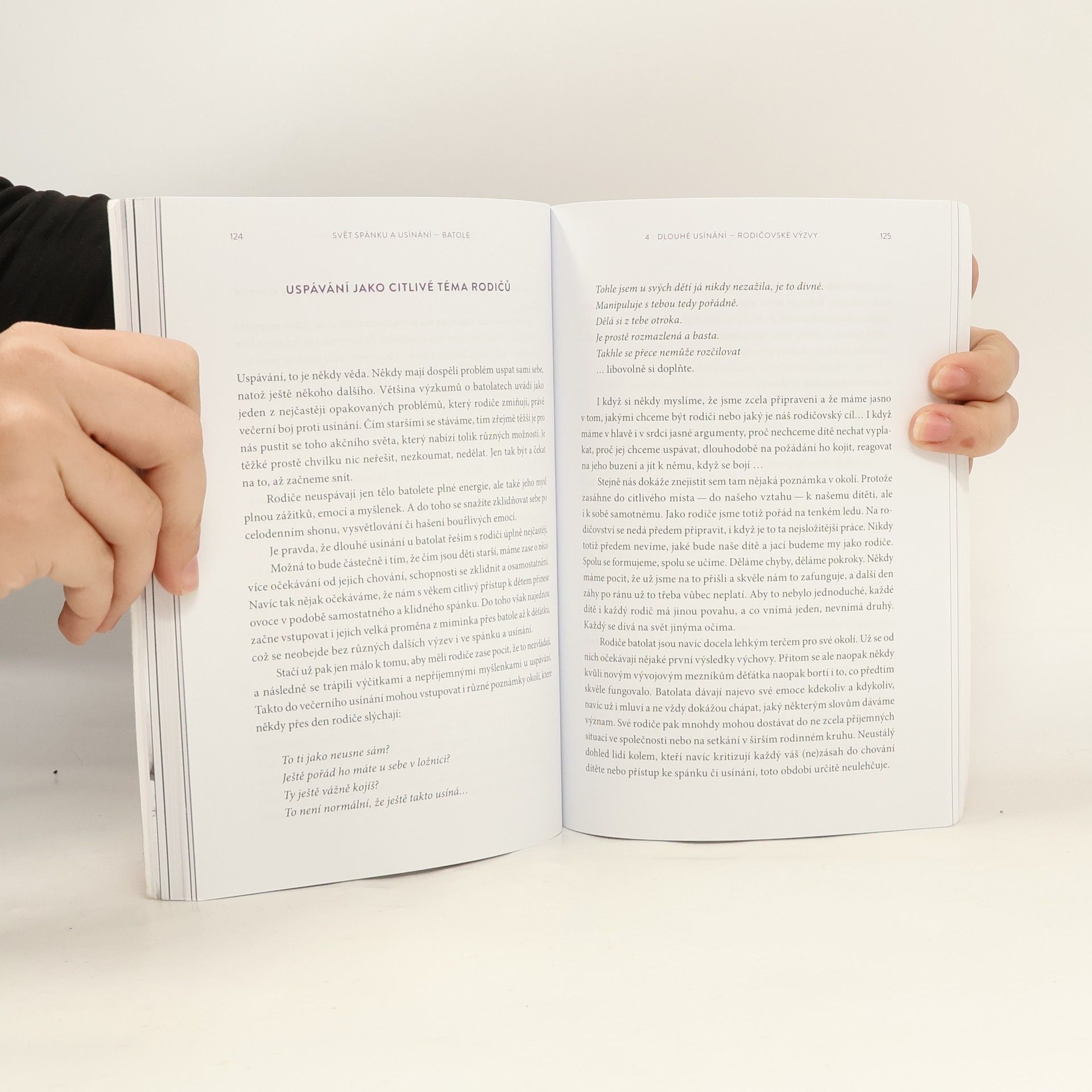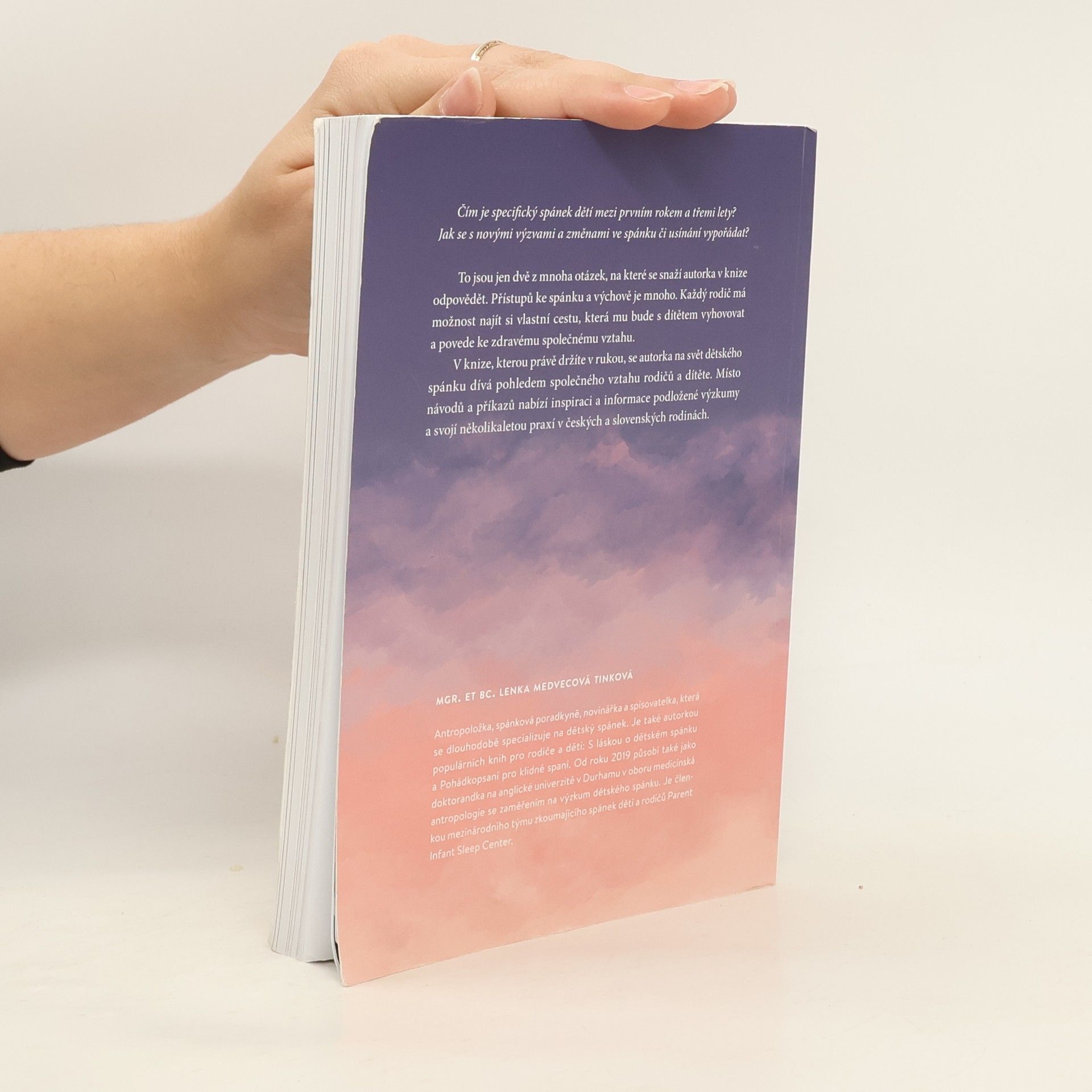 Praktický průvodce spánkem a usínáním dětí od 1 - 3 let. Nejdramatičtějším ve vývoji člověka je prý přechod od miminka k dítěti. Právě batolecí období mezi 1-3 rokem je proto plný nových výzev také ve spánku a usínání. Už to nejsou úplně malá miminka, ale přesto ještě nejsou samostatnými dětmi. Čeká je spousta změn.Někdy mám pocit, jakoby v celém tom laskavém přístupu k miminkům chybělo další pokračování. Je nám jasné, že miminko nepláče bez příčiny, že potřebuje naši péči, i naši reakci na jeho pláč. Víme, jak důležité je dotýkat se ho, mazlit, nosit, mít ho u sebe na blízku. Jenže jak je to se staršími dětmi?Proč se tak brání usínání, když na něm je zjevně vidět únava?Dá se vůbec posunout velmi pozdní usínání?Jak ukončit - změnit styl usínání, kojením či nošením, citlivě nebo to přijde samo?Jak změnit styl usínání, které sice dítěti vyhovuje, ale nás už ničí a potřebujeme akutní změnu? Kdy už dítě nepotřebuje přes den spát?Proč se vlastně ještě některé děti mezi 1-3 rokem budí nebo se právě v tomto období budit začnou?Jak uspávat dvě děti najednou – jde to vůbec?Dá se sladit spánek sourozenců?Takové dotazy dostávám denně. Proto teď čtete tyto řádky. Odpovědi se nevejdou do jednoho článku. Sepsala jsem vám vše do knihy, propletla příběhy z praxe a doplnila praktickými tipy, terapeutickými pohádkami, večerním uvolňujícím cvičením nebo také třeba akčním plánem pro maminky.