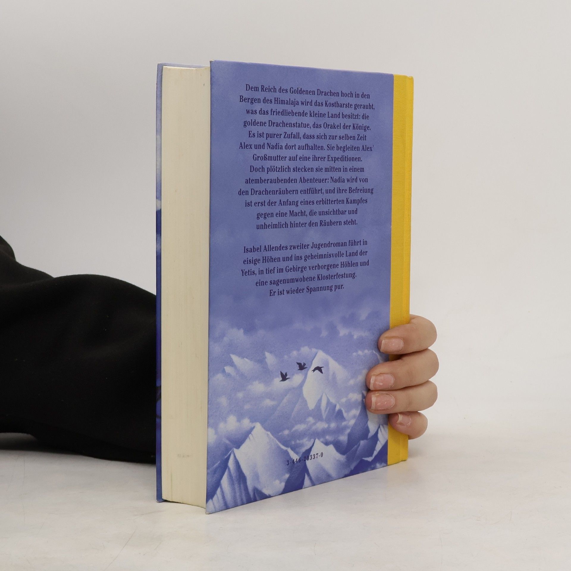 Wie sind die „dunklen“ Männer in den Palast gelangt, um den Goldenen Drachen zu rauben? Nur die engsten Vertrauten des Königs kannten sein Versteck - gibt es im Palast einen Verräter? Nichts ahnend geraten Nadia und Alex in ein aufregendes Abenteuer mitten im Himalaja, wo die „Skorpionsekte“ ihr Unwesen treibt: Die Jagd nach ihr führt in eisige Höhen, auf die Spuren der Yetis und in eine sagenumwobene Klosterfestung... Abenteuer pur vor einer atemberaubenden Kulisse: Auch in ihrem zweiten Jugendroman lässt Isabel Allende keine Leserwünsche offen.