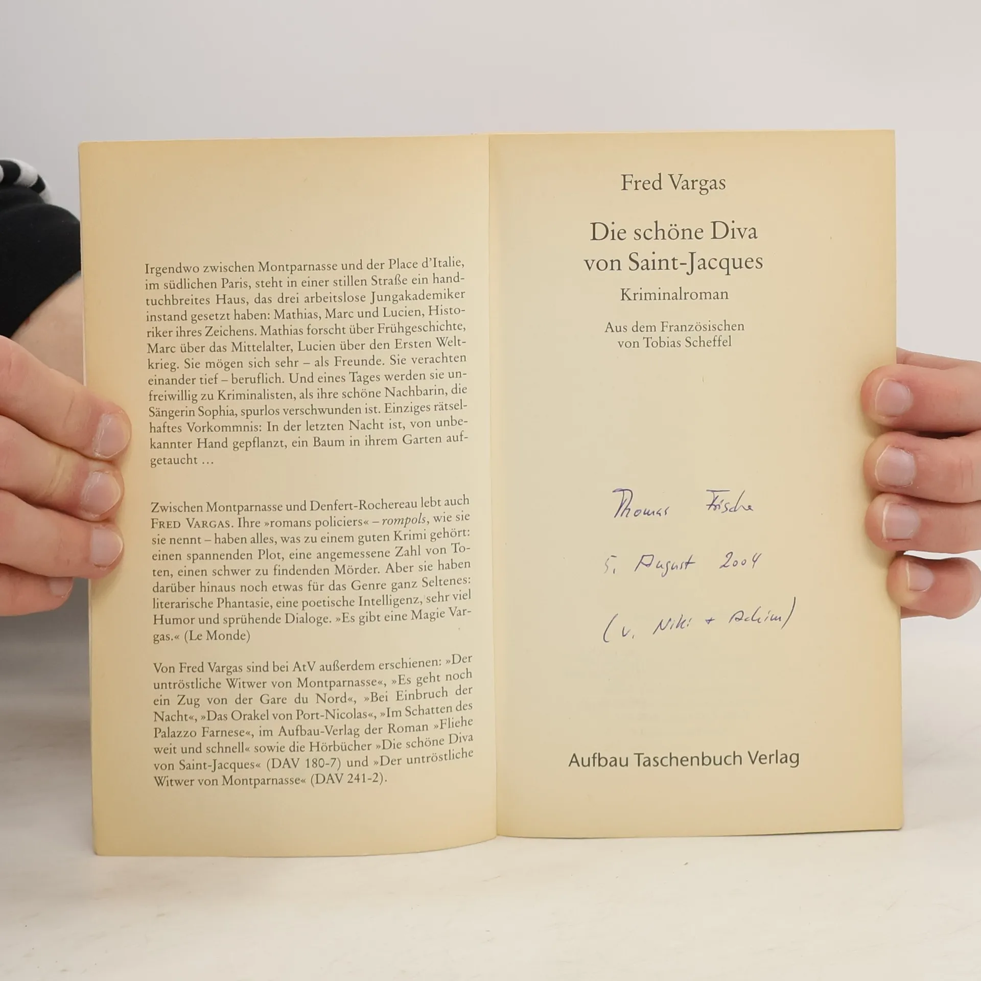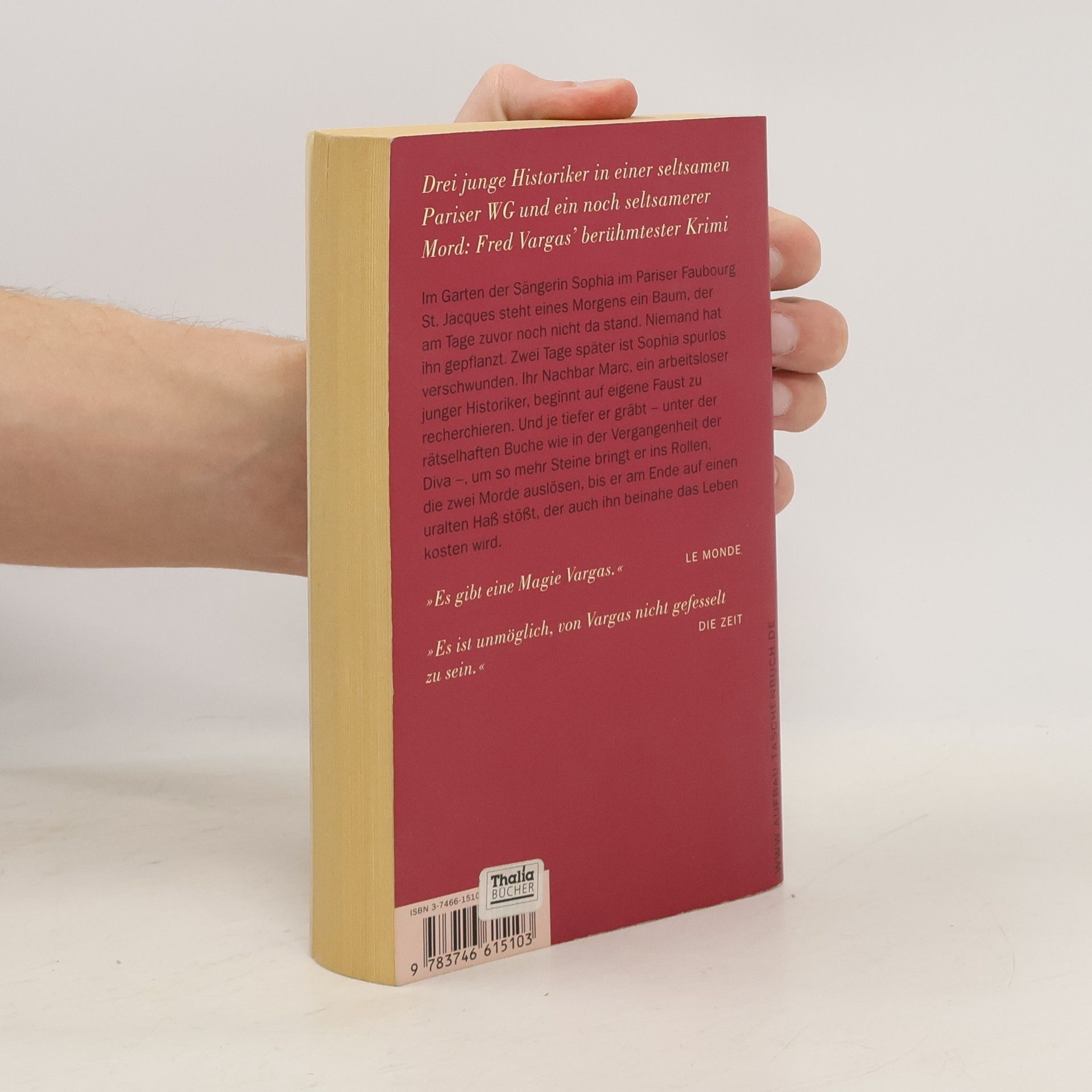 Ein Haus, ein Baum, ein Mord. Im Garten der Sängerin Sophia im Pariser Faubourg St. Jacques steht eines Morgens ein Baum, der am Tage zuvor noch nicht da stand. Zwei Tage später ist Sophia spurlos verschwunden. Ihr Nachbar Marc, ein arbeitsloser junger Historiker, beginnt auf eigene Faust zu recherchieren, bis er am Ende auf einen uralten Haß stößt, der tief unter den Wurzeln des Baumes verborgen war. „Es gibt eine Magie Vargas.“ Le Monde „Es ist unmöglich, von Vargas nicht gefesselt zu sein.“ DIE ZEIT