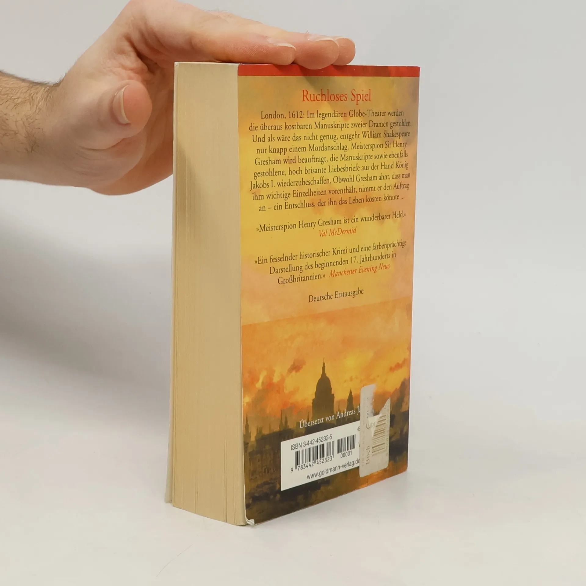 London, 1612: Im ausverkauften Globe-Theater werden die überaus kostbaren Manuskripte zweier Dramen gestohlen. Und als wäre das nicht genug, entgeht William Shakespeare nur knapp einem Mordanschlag. Meisterspion Sir Henry Gresham wird beauftragt, die Manuskripte sowie ebenfalls gestohlene, hoch brisante Liebesbriefe aus der Hand Königs James I. wieder zu beschaffen. Obwohl Gresham ahnt, dass man ihm wichtige Einzelheiten vorenthält, nimmt er den Auftrag an - ein Entschluss, der ihm das Leben kosten könnte ...