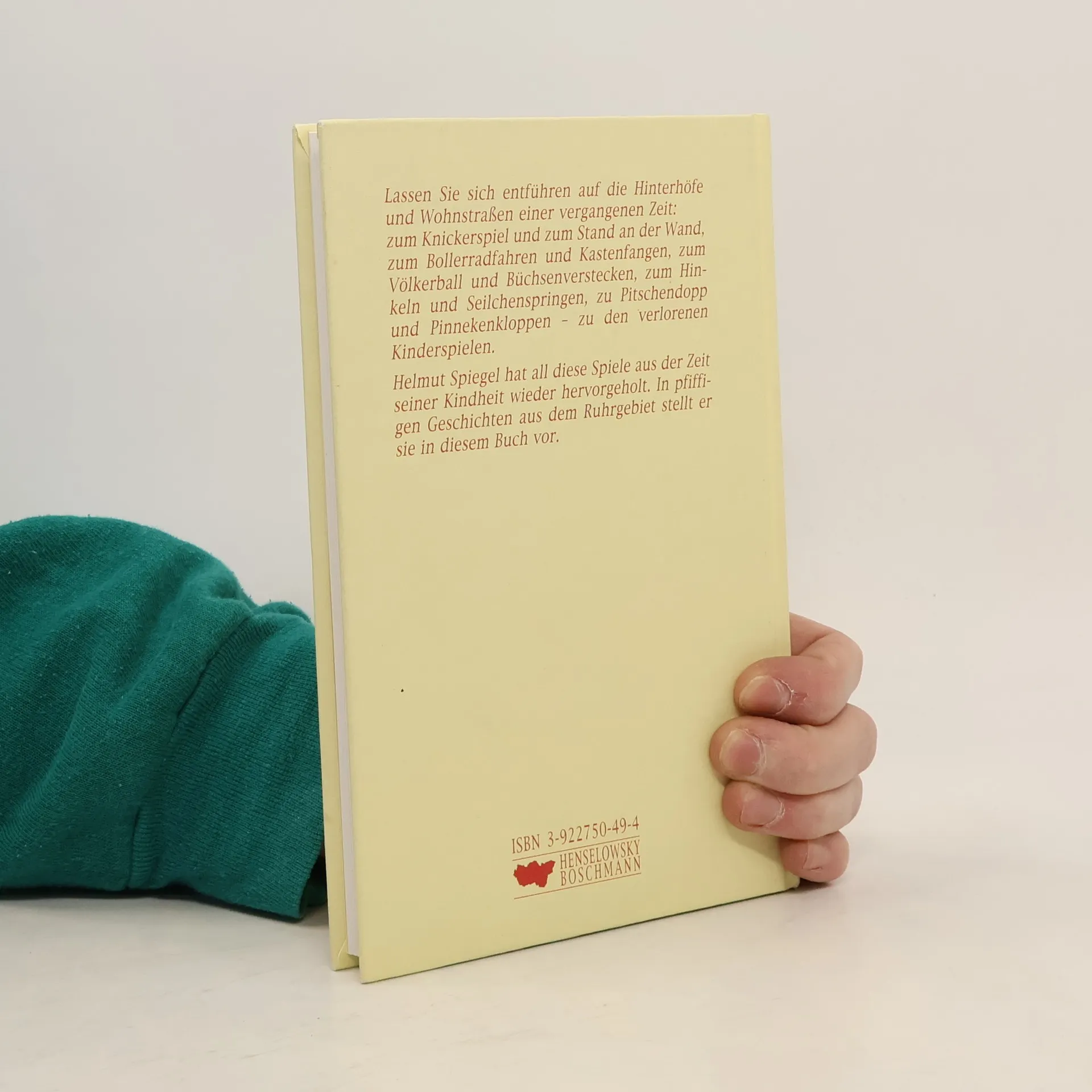 Lassen Sie sich entführen auf die Hinterhöfe und Wohnstraßen einer vergangenen Zeit: zum Knickerspiel und zum Stand an der Wand, zum Bollerradfahren und Kastenfangen, zum Völkerball und Büchsenverstecken, zum Hinkeln und Seilchenspringen, zu Pitschendopp und Pinnekenkloppen - zu den verlorenen Kinderspielen.Helmut Spiegel hat all diese Spiele aus der Zeit seiner Kindheit wieder hervorgeholt. In pfiffigen Geschichten aus dem Ruhrgebiet stellt er sie in diesem Buch vor. (Verlagsangabe)