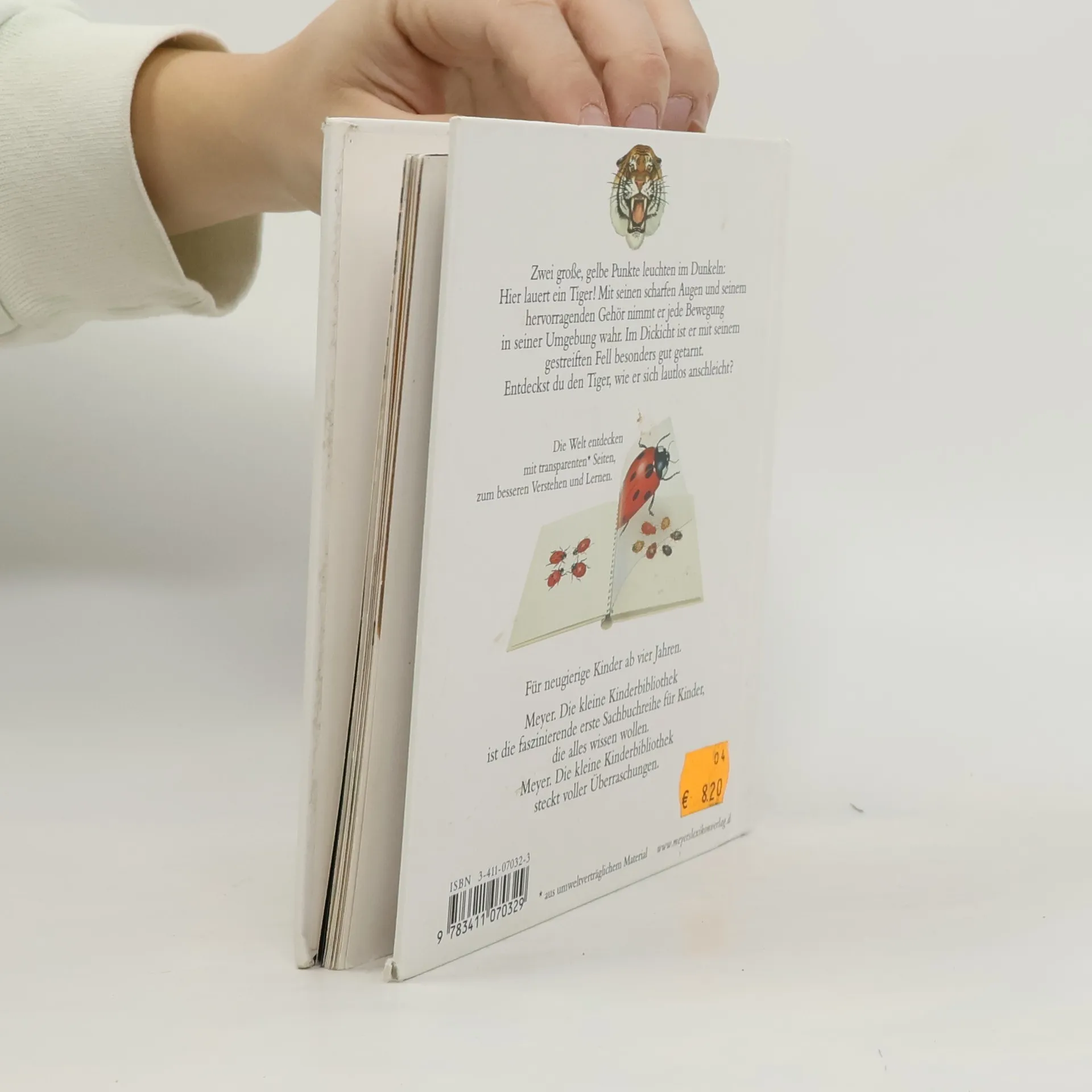 Durch spannende Effekte vermittelt die Bilderbuchreihe „Meyers kleine Kinderbibliothek“ erstes Sachwissen für Kinder ab 3 Jahren. Transparente Folien zeigen beim Umblättern das Innenleben von Dingen, machen Verdecktes sichtbar oder veranschaulichen Veränderungen. In diesem Band erfahren Kinder beispielsweise, welche Eigenschaften des Tigers für das Leben in der Savanne besonders wichtig sind. Außerdem wird die ganze Familie der Raubkatzen vorgestellt.