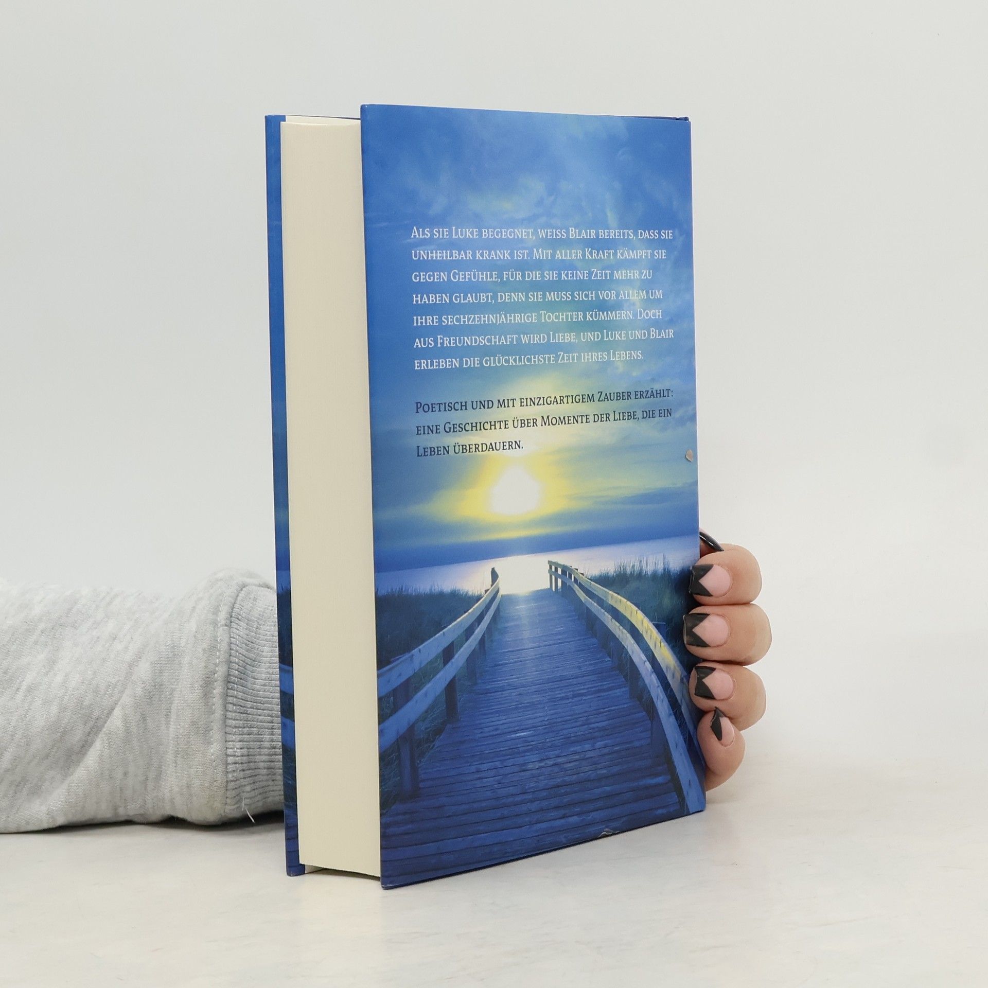 Sie kennen sich aus Schulzeiten und hatten nichts gemeinsam. Als sie Luke wieder begegnet, weiß Blair, dass sie bald sterben wird. Die kurze Zeit, die ihr noch bleibt, will sie mit ihrer sechzehnjährigen Tochter verbringen und sich nicht aufhalten mit Liebesgeschichten, die ihr ohnehin nie Glück gebracht haben. Doch Luke hat sich verändert, ist nicht mehr der oberflächliche Schönling, der Blair im College wenig beachtet hat. Einfühlsam und voller Vertrauen begleitet er Blair, erzählt ihr seine Geschichte, während sie zum ersten Mal seit langer Zeit an der Seite eines Menschen Halt findet. Und irgendwann wissen beide, dass ihre Liebe groß genug ist, den Kampf um das Leben aufzunehmen. „Seit Anita Shreve hat Sie nichts mehr so bewegt.“ MARIE CLAIRE