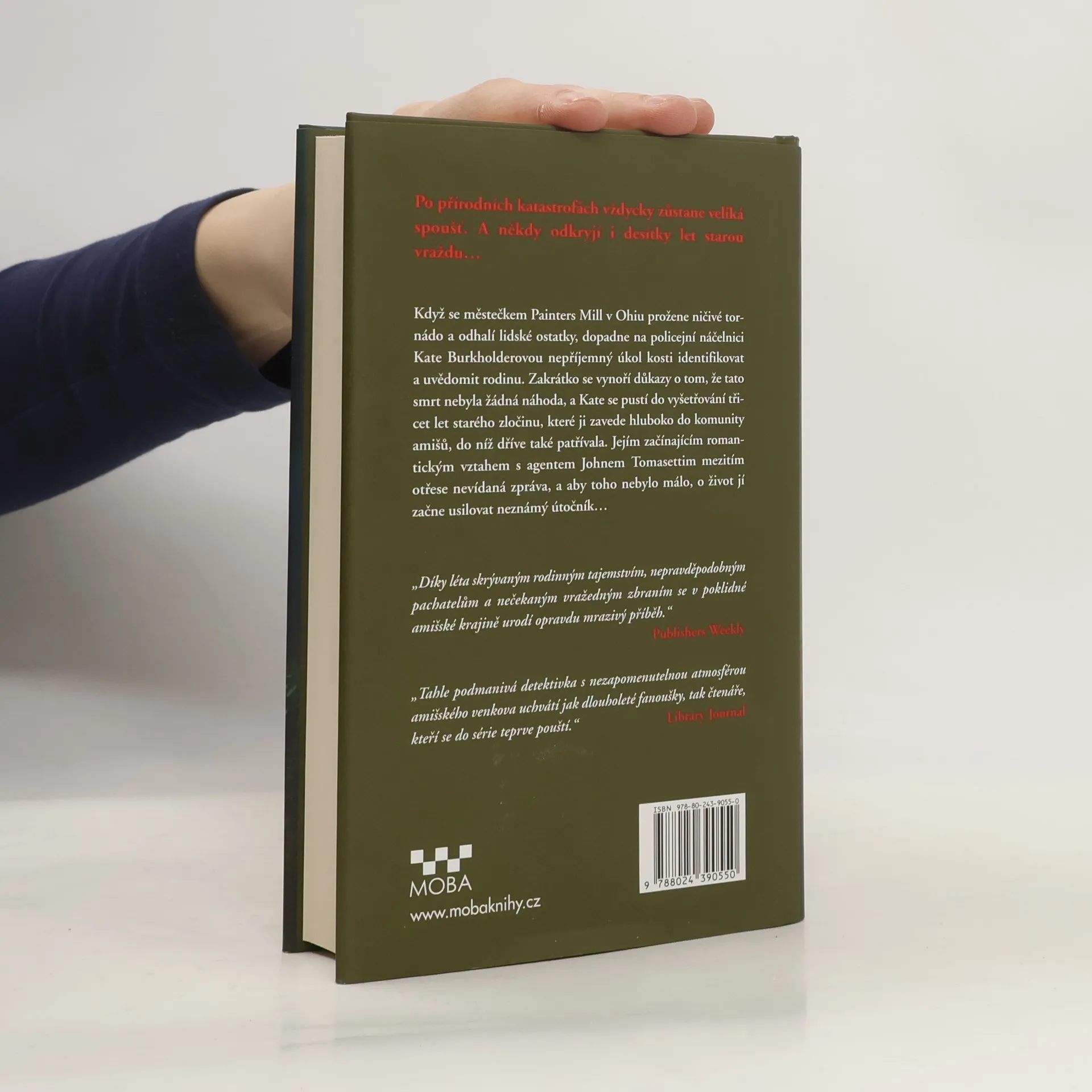 Na městečko Panters Mill v Ohiu, kde žije početná komunita amišů, udeří ničivé tornádo. Při odklízení následků je v pytli nalezena lidská kostra. Bez končetin. Něco je okousalo. Kate Burkholderová se pouští do vyšetřování třicet let starého zločinu či zamaskované nehody. A pátrání ji znovu přivádí mezi amiše, kteří bedlivě střeží své soukromí. Odhalení totožnosti oběti spouští další lavinu událostí, na Kate má navíc spadeno neznámý vetřelec. A aby toho nebylo málo, Kate zjišťuje, že je těhotná. Na to ani ona, ani John nebyli připraveni…