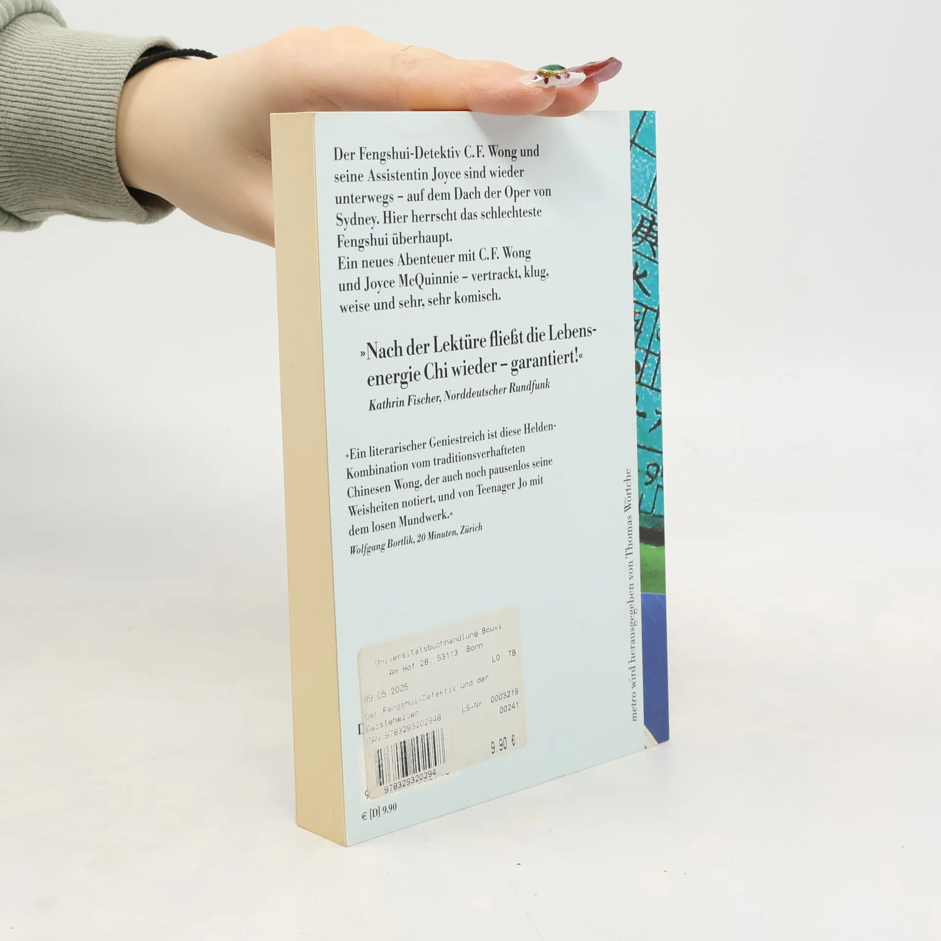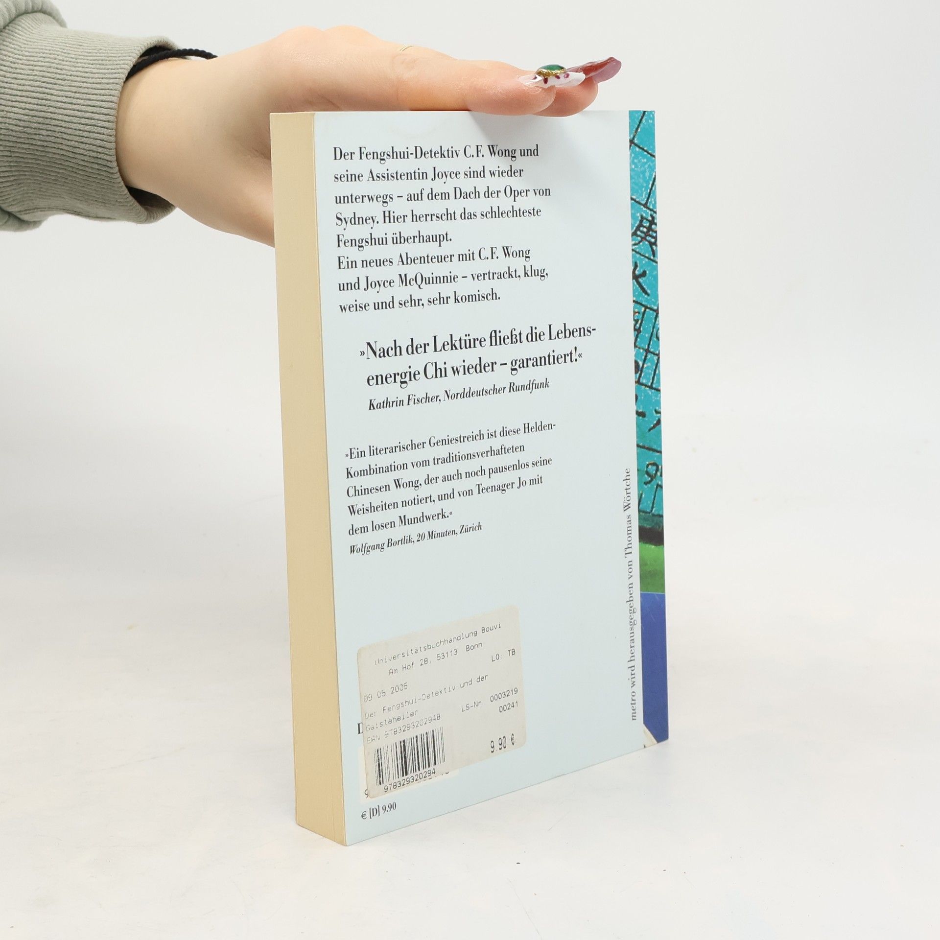 Wenn ein malaysischer Geistheiler jemanden ganz ohne Spuren umbringen will, dann muss er nach Süden gehen. Ganz runter, nach Australien. Am besten nach Sydney, und dort am besten zur Oper. Denn das Opernhaus von Sydney hat das allerschlechteste Fengshui. Also ein Fall für den Fengshui-Detektiv C. F. Wong und seine Assistentin Joyce McQuinnie. Es hilft nichts, dass auch noch eine von Geistererscheinungen geplagte Zahnarztfamilie und die Hongkonger Triaden mitmischen: Sydney ist nach den turbulenten Aktionen unseres Pärchens nicht mehr dieselbe Stadt.