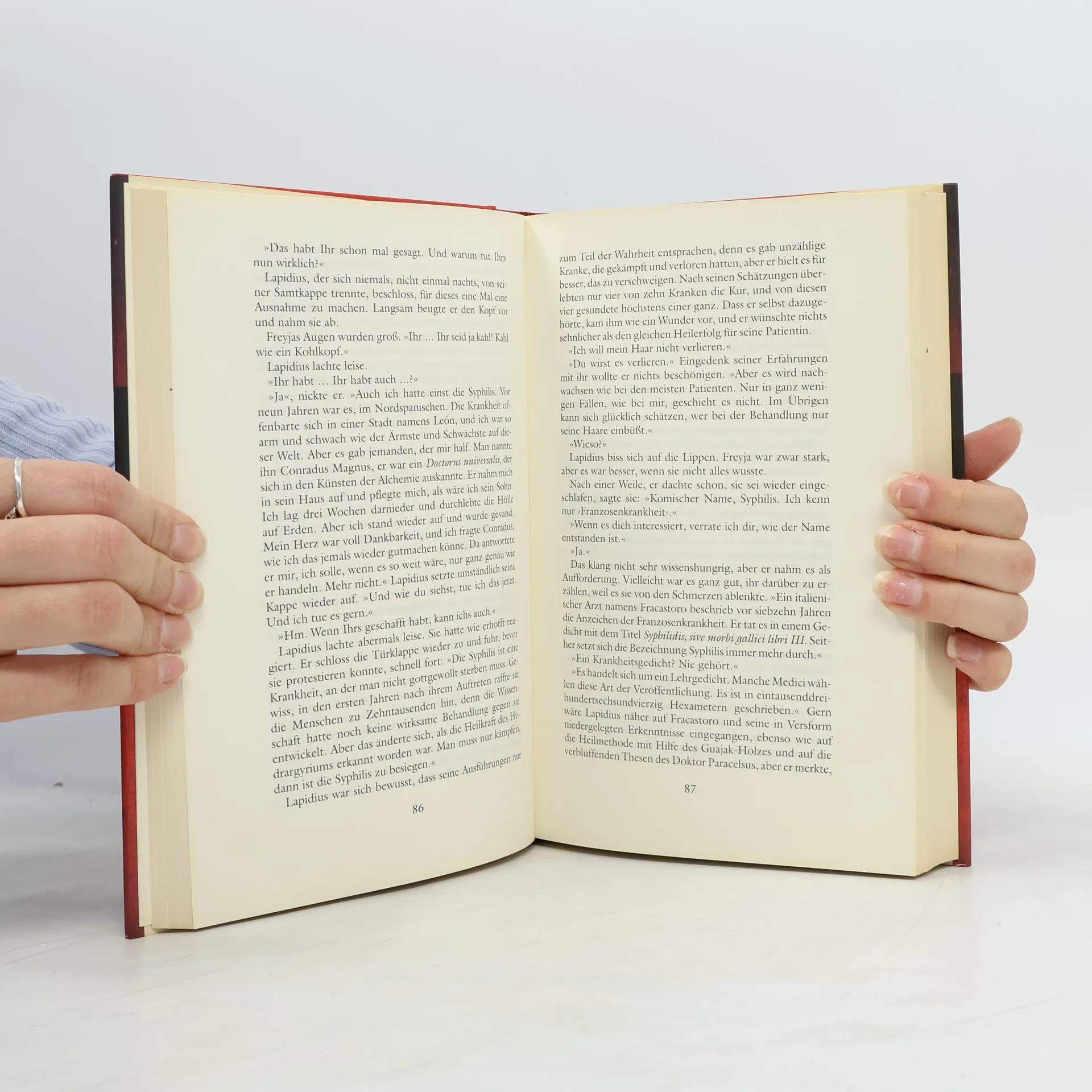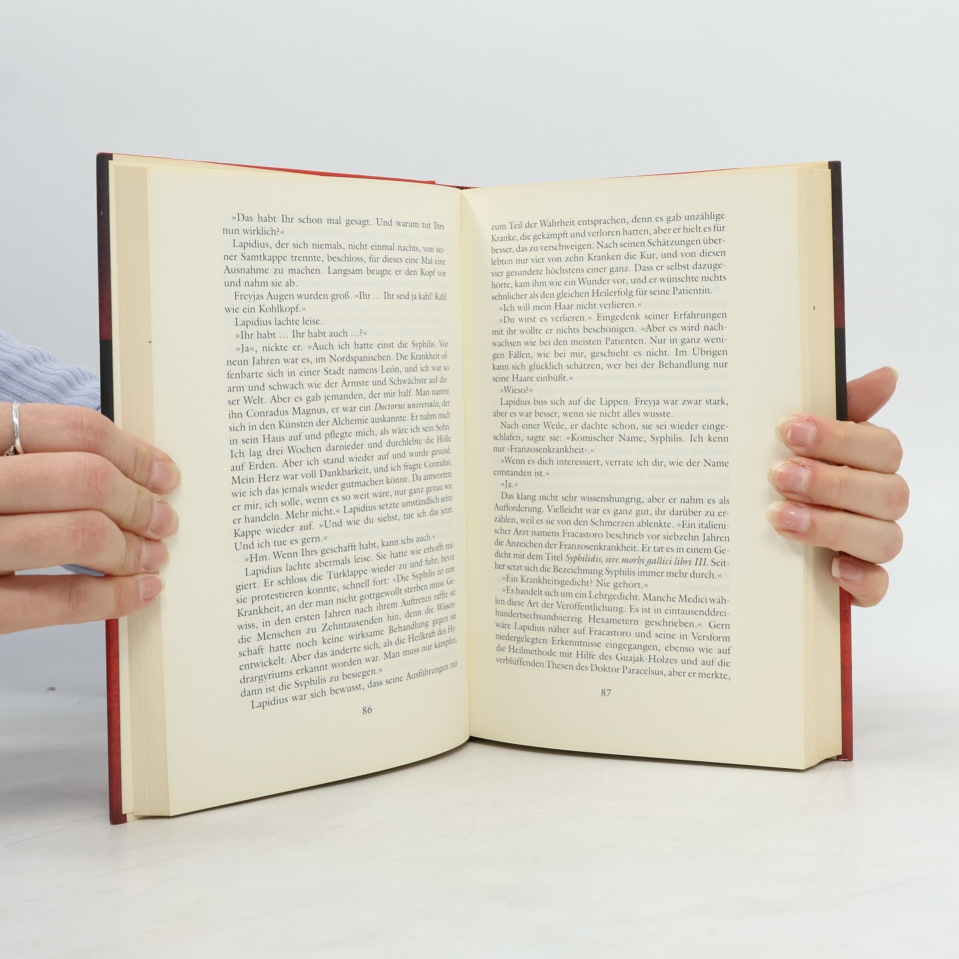 Der Alchemist Lapidius ist der Einzige, der der jungen Kräuterhändlerin Freyja helfen kann. Das schwer kranke Mädchen ist der Hexerei angeklagt, und Lapidius bleibt nicht viel Zeit, die Unschuld seines Schützlings zu beweisen. Kirchrode im Harz im Jahre 1547: Hier wird der Alchemist Lapidius um medizinische Hilfe in einem diffizilen Fall gebeten. Das junge Kräuterweib Freyja Säckler, das der Hexerei angeklagt wird, ist unter der Folter zusammengebrochen. Lapidius ahnt, dass Freyja mit der Syphilis infiziert ist, die in jenen Tagen ganz Europa wie eine Seuche überzieht. Lapidius ist nicht nur überzeugt, dass die junge Frau zu Unrecht angeklagt ist, er weiß auch, wie er sie heilen kann: durch eine Kur in seiner Hitzkammer. Man gewährt ihm drei Wochen, doch die Zeit wird knapp, als Frauenleichen gefunden werden, in deren Körper Freyjas Initialen eingeritzt sind.