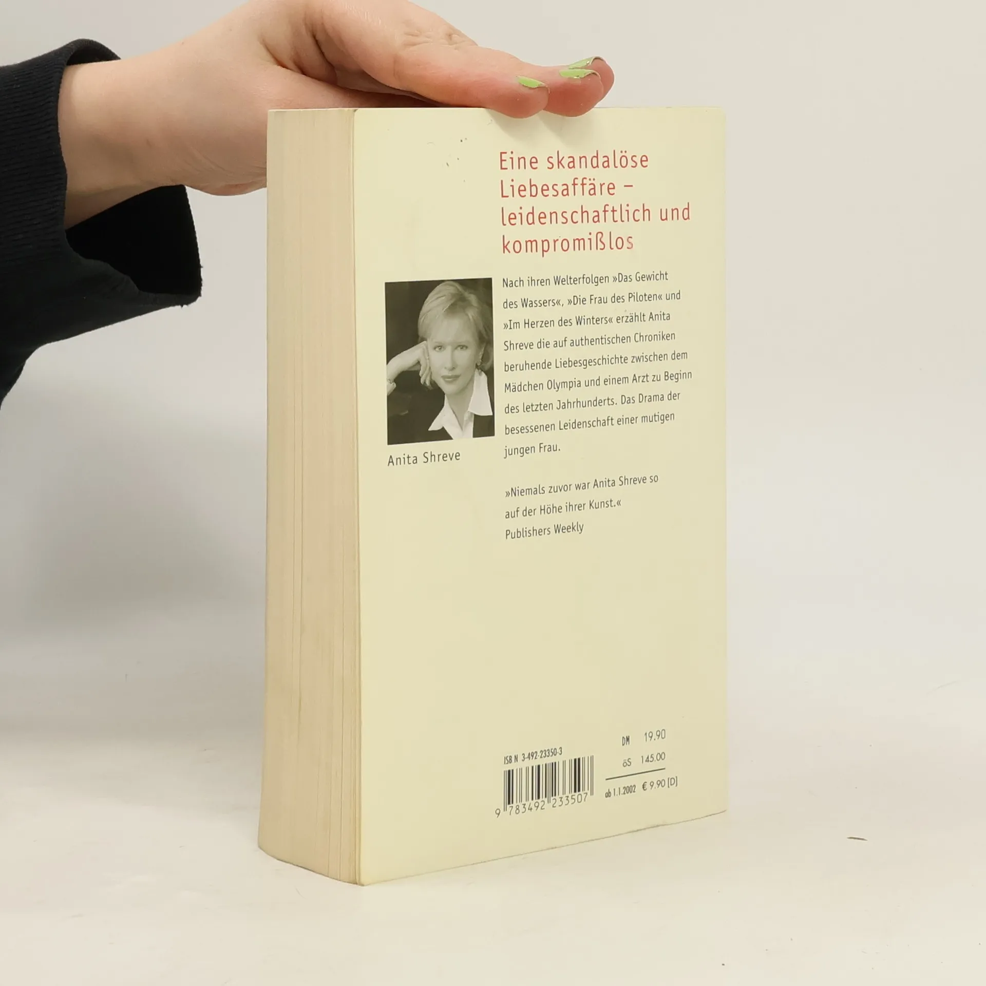 Anita Shreve gehört seit ihrem Bestseller 'Die Frau des Piloten' zu den amerikanischen Top-Autoren. In ihrem neuen Roman 'Olympia', den sie selbst als ihren wichtigsten bezeichnet, erzählt sie auf der Basis historischer Ereignisse eine skandalöse Liebesgeschichte aus der Zeit um 1900. Die fünfzehnjährige Olympia verliebt sich in den einundvierzigjährigen Arzt und Familienvater John Haskell. Eine leidenschaftliche Affäre beginnt, die sich dramatisch zuspitzt, als die Beziehung ans Licht kommt und Olympia entdeckt, daß sie schwanger ist. Die junge Frau steht mutig zu ihrer Liebe jenseits aller Konventionen.