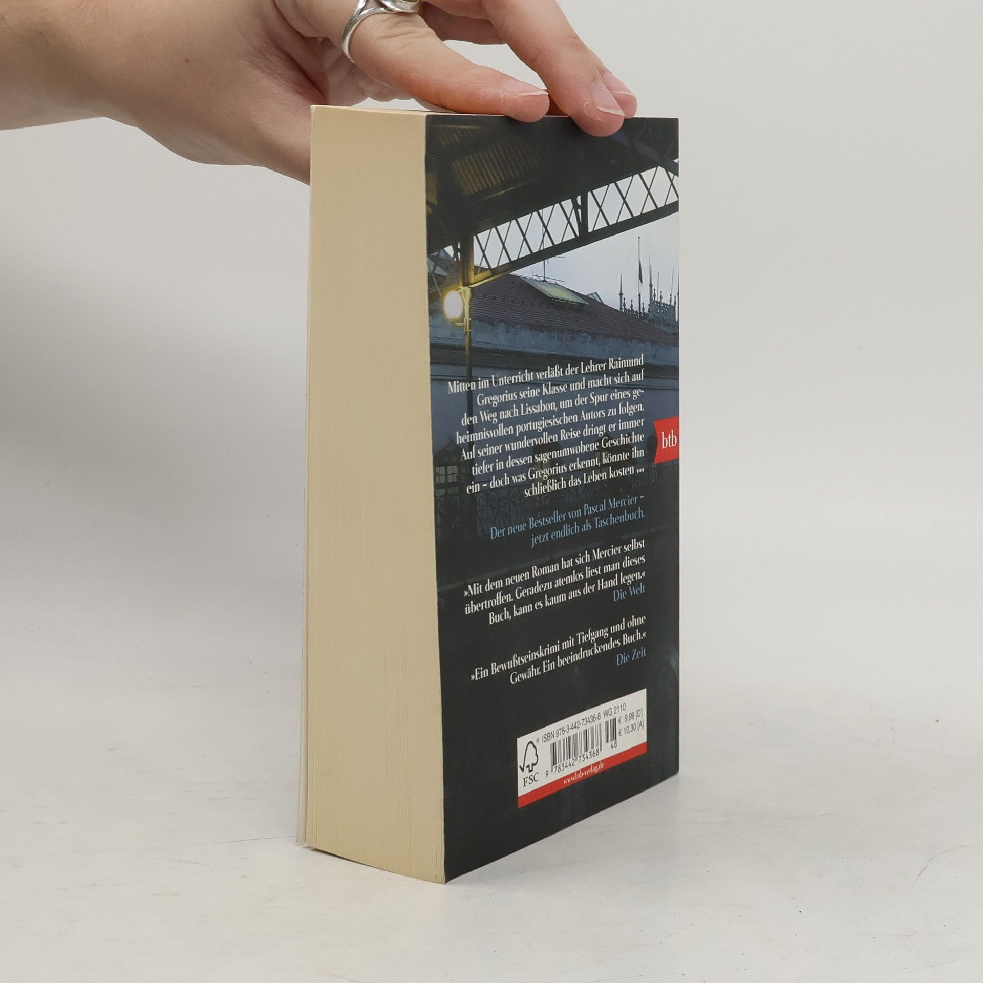 Mitten im Unterricht verlässt ein Lehrer seine Schule und macht sich auf den Weg nach Lissabon, um den Spuren eines geheimnisvollen Autors zu folgen. Immer tiefer zieht es ihn in dessen Aufzeichnungen und Reflexionen, immer mehr Menschen lernt er kennen, die von diesem Mann, den ein dunkles Geheimnis umgibt, zutiefst beeindruckt waren. Eine wundervolle Reise – die vergeblich sein muss und deren Bedrohungen der Reisende nicht gewachsen ist. Endlich kann er wieder fühlen, endlich hat er von seinem Leben zwischen Büchern aufgeblickt – aber was er sieht, könnte ihn das Leben kosten …
