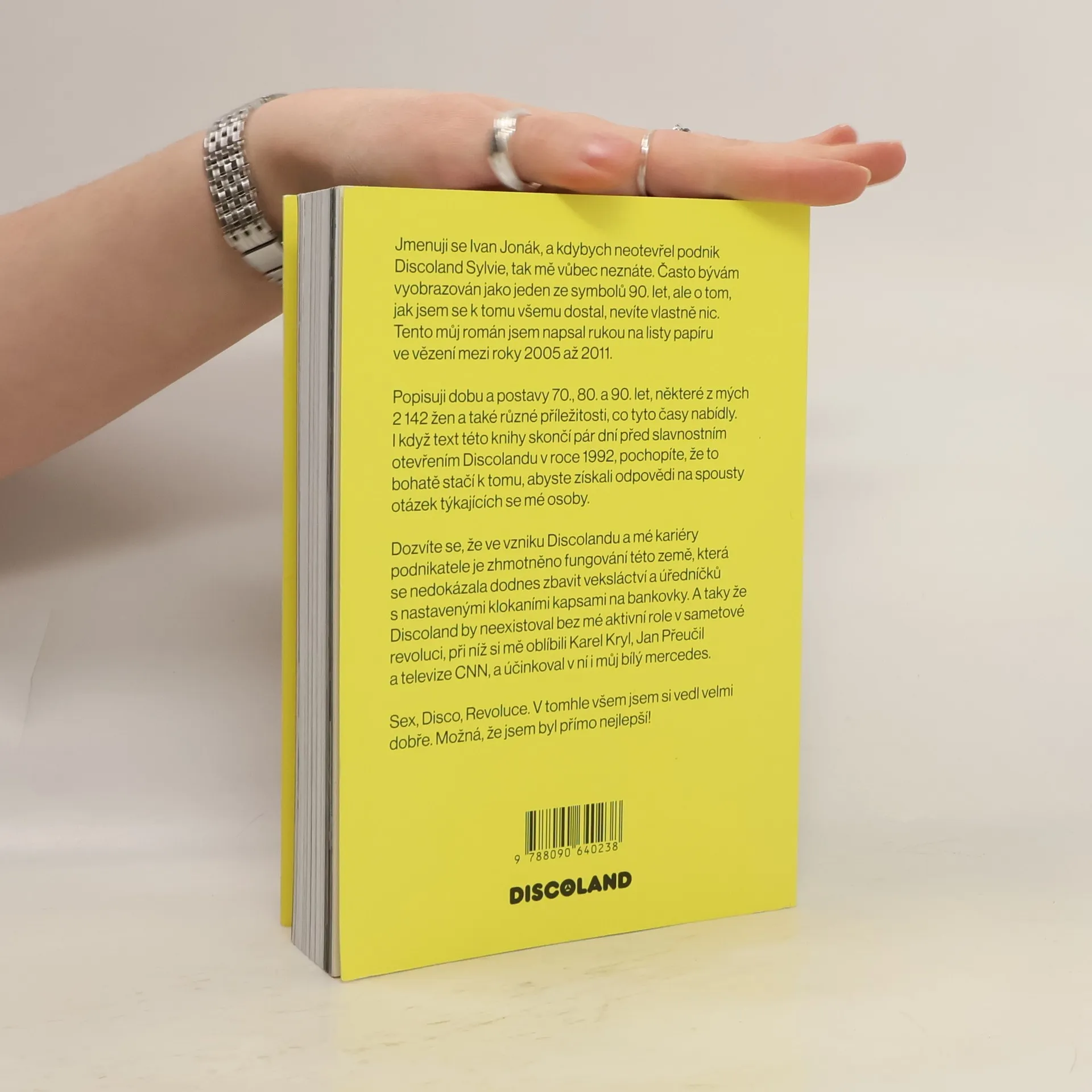Rukopis Ivana Jonáka vznikal mezi lety 2005 a 2011 během jeho věznění za nájemnou vraždu manželky. V knize, nazvané Jmenuji se Ivan Jonák, se představuje nejen jako provozovatel legendárního Discolandu Sylvie, ale také jako symbol divokých 90. let a bouřlivého počátku podnikání v Česku. Vypráví svůj příběh plný absurdit a nečekaných zvratů, který sahá do 70., 80. a 90. let, a popisuje postavy i příležitosti, které formovaly jeho život. I když kniha končí krátce před otevřením Discolandu v roce 1992, nabízí mnoho odpovědí na otázky týkající se Jonákovy osoby a odhaluje, jak sex, politika a podnikání ovlivňovaly tehdejší společnost. Vypráví o tom, jak se tato „pološílená země“ nedokázala zbavit veksláctví a úředníků s kapsami nastavenými na úplatky, a zdůrazňuje svou roli během sametové revoluce, kdy se spřátelil s Karlem Krylem a jeho bílý mercedes byl svědkem historických událostí. Sex, disco a revoluce – v tomhle všem Jonák exceloval.