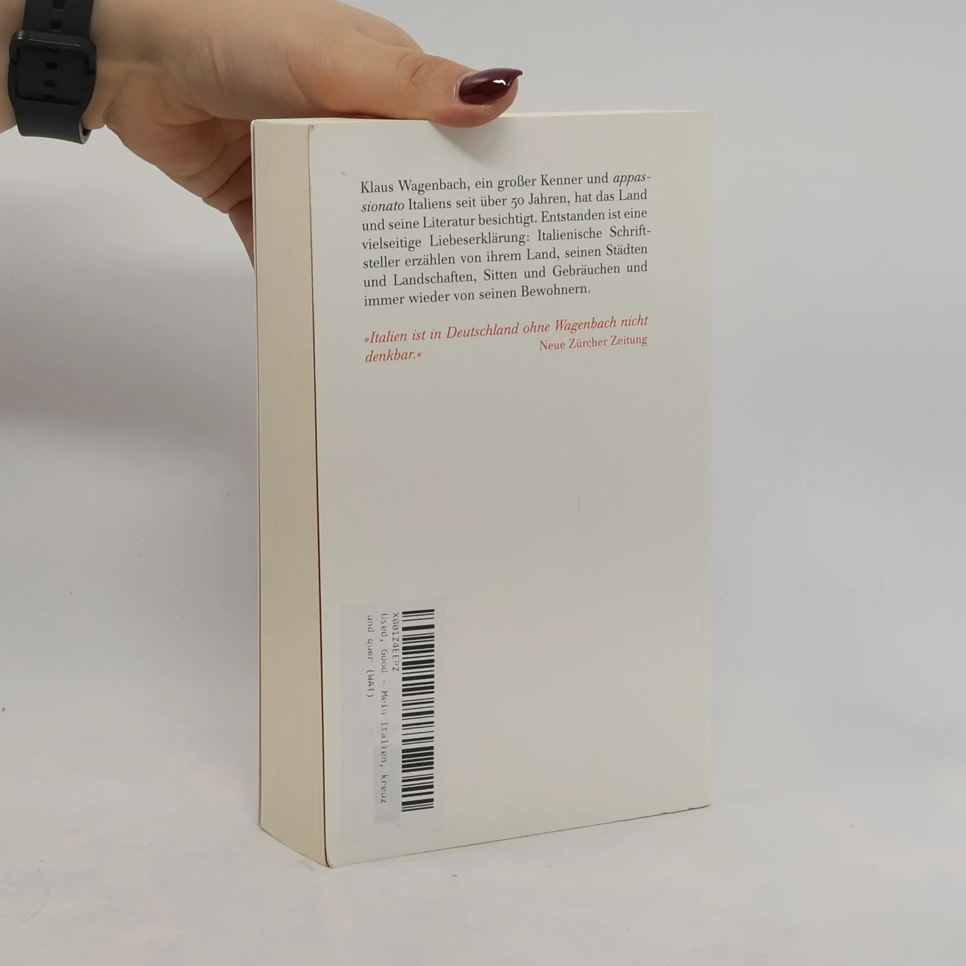 Klaus Wagenbach, ein großer Kenner und 'appassionato' Italiens seit über 50 Jahren, hat das Land und seine Literatur besichtigt. Entstanden ist eine vielseitige Liebeserklärung: Italienische Schriftsteller erzählen von ihrem Land, seinen Städten und Landschaften, Sitten und Gebräuchen und immer wieder von seinen Bewohnern. »Italien ist in Deutschland ohne Wagenbach nicht denkbar.« NZZ