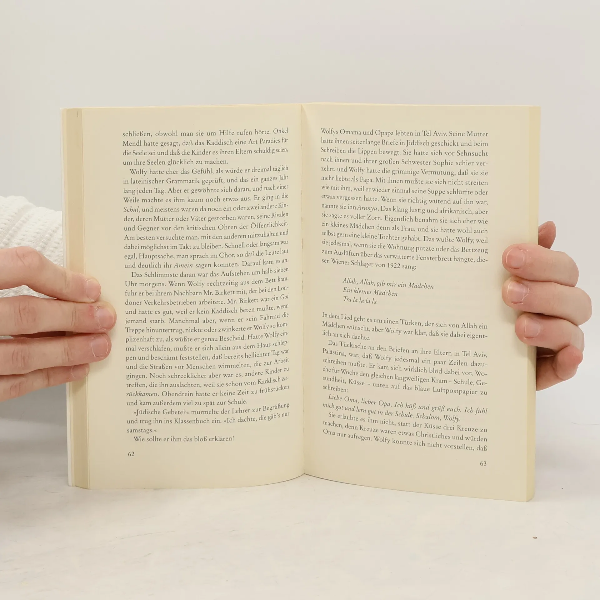 Die aus Wien stammenden Helfgotts können sich 1939 nach England in Sicherheit bringen. Für den jungen Wolfy stellt London mit seinen Secondhandläden, Fußballklubs und Rotlichtvierteln eine Attraktion dar, für seine Eltern und Verwandten jedoch ist es ein Ort der Fremde. Voller Zärtlichkeit und Humor beschreibt Zvi Jagendorf das Leben von "Flichtlingen", die sich wie Waisenkinder fühlen.
