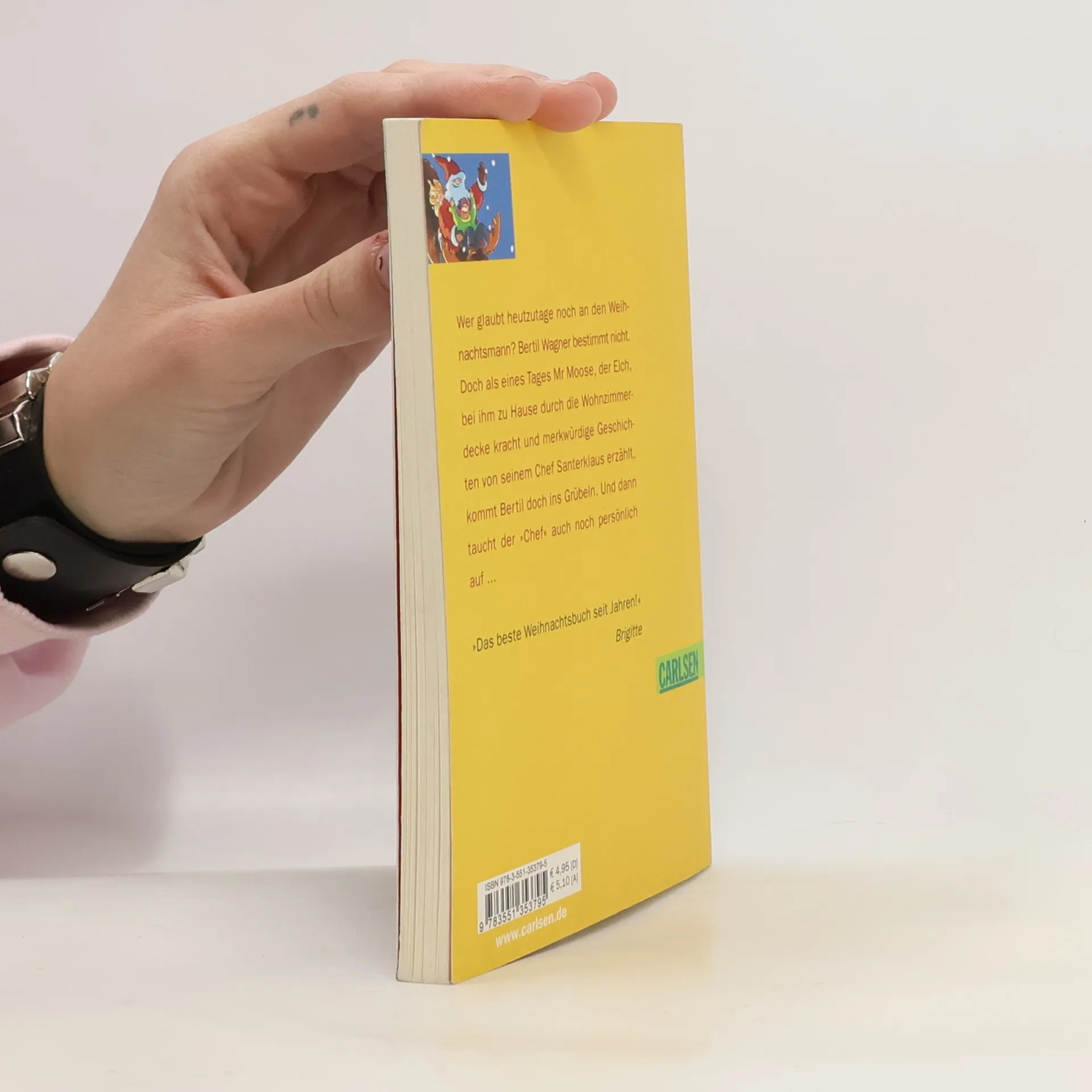 Wer glaubt schon an den Weihnachtsmann? Der kleine Bertil jedenfalls nicht mehr. Doch als eines Tages ein Elch durchs Dach mitten ins Wohnzimmer kracht und berichtet, dass er für den „Chef“ auf Probefahrt war, wird Bertil nachdenklich. In allen Einzelheiten lässt er sich von Mr Moose berichten, wie das mit dem Weihnachtsmann, dem Schlitten, den Rentieren und den Elchen (und den Geschenken!) so vor sich geht. Und als dann, ein paar Tage vor Weihnachten, der „Chef“ höchstpersönlich auftaucht, um Mr Moose wieder abzuholen, wird es wirklich spannend ..."