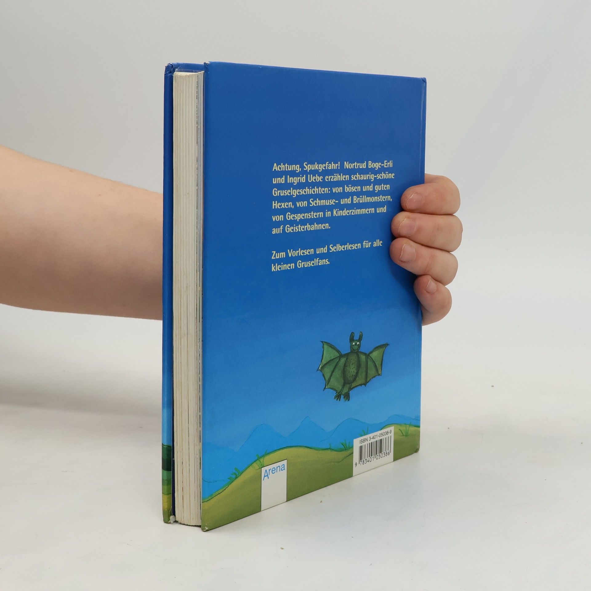 Spannende und witzige Gruselgeschichten: Die Frau mit der grünen Tasche sorgt irgendwie dafür, dass der kleine Max, der so gerne ein König wäre, tatsächlich eine goldene Krone findet: Im Sandkasten! Und die Schulkinder, die im Werken kleine Gespenster herstellen, erleben allerhand Überraschungen mit ihnen! Die beiden Autorinnen haben Gruselgeschichten geschrieben fürs erste Lesealter, humorvoll und oft mit unerwarteten Wendungen. Grosse Schrift und viele bunte Illustrationen erleichtern das Lesen. Obwohl das Buch ziemlich dick ist, kann es gut bewältigt werden, da jede Geschichte in sich abgeschlossen ist. Ab 7 Jahren, gut, Frau IBF.