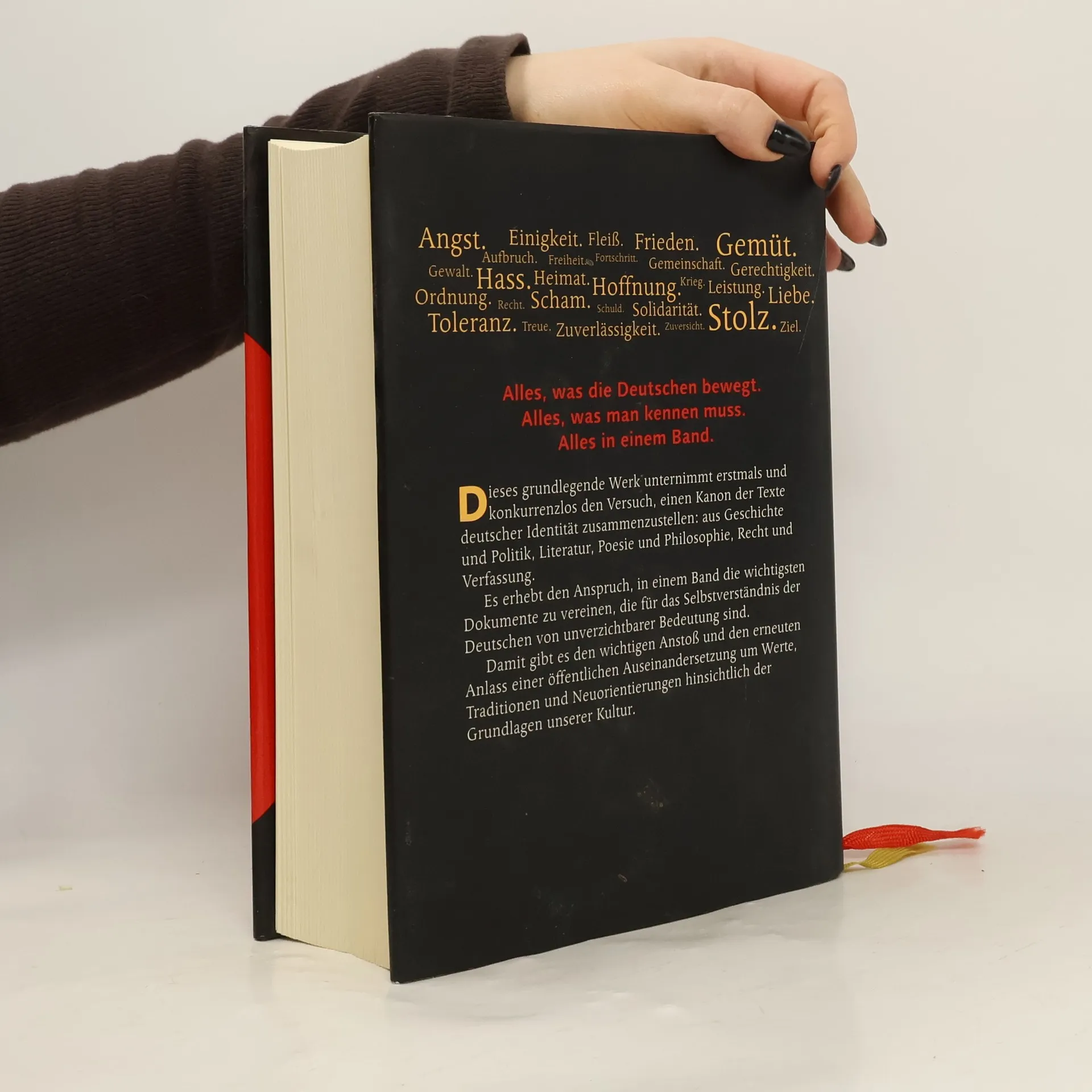 In diesem Buch werden die Leserinnen und Leser das "Nibelungenlied" ebenso finden wie die Gedichte eines Walther von der Vogelweide, Zeugnisse der Volkspoesie ebenso wie Bismarcks "Wir Deutschen fürchten Gott, aber sonst nichts auf der Welt". Das Ermächtigungsgesetz von 1933 ebenso wie die "Ballade vom Reichstagsbrand" von Bertolt Brecht und die "Todesfuge" von Paul Celan. "Deutschland, ein Wintermärchen" ebenso wie die "Loreley" und zahlreiche Auszüge aus Romanen und Theaterstücken, Gedichte, Märchen und Balladen. Das Grundgesetz ebenso wie die Präambeln wichtiger Verträge der Bundesrepublik Deutschland. Das Flugblatt von Sophie und Hans Scholl ebenso wie Auszüge aus den großen parlamentarischen Debatten. Bewegende Reden (zum Beispiel die Rundfunkansprache von Thomas Mann oder die Rede zum 8. Mai 1945 von Richard von Weizsäcker) ebenso wie den Text der Nationalhymne