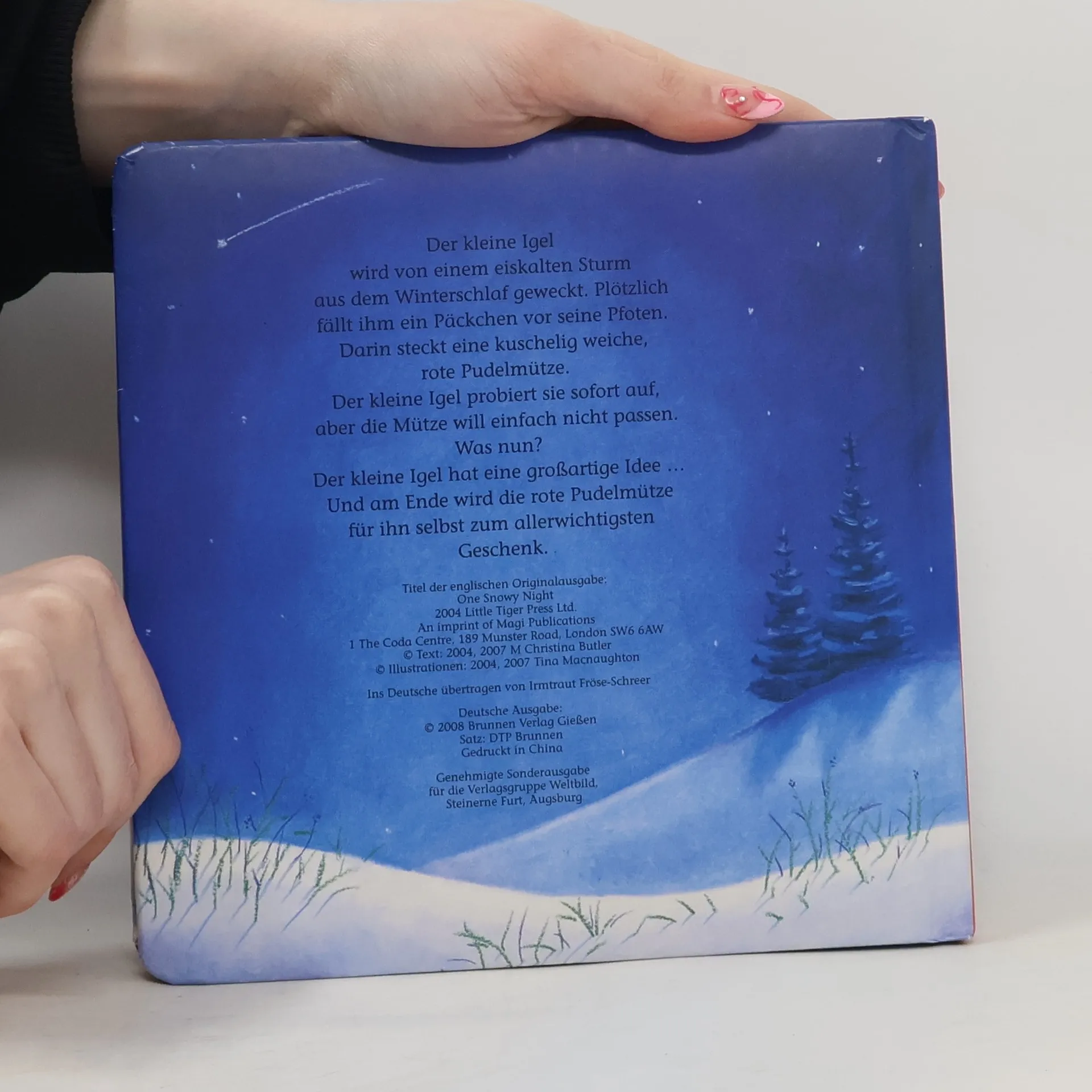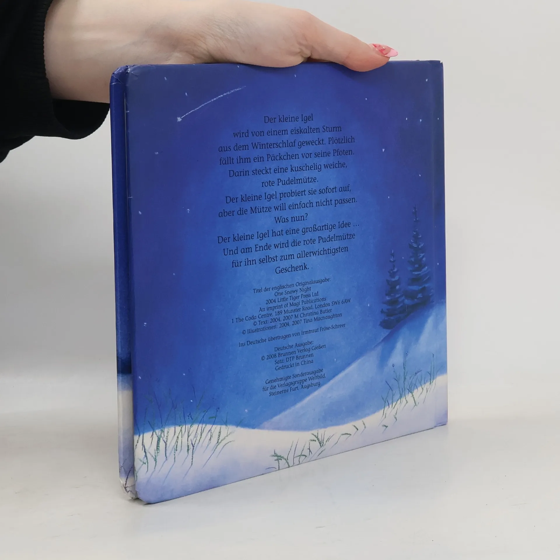 Der kleine Igel wird von einem eiskalten Sturm aus dem Winterschlaf geweckt. Nun friert er so sehr, dass er nicht wieder einschlafen kann. Plötzlich fällt ihm ein Päckchen vor die Pfoten. "Für den kleinen Igel" steht darauf - und eine kuschelig weiche, rote Pudelmütze steckt darin. Der kleine Igel probiert sie sofort auf, aber die Mütze will einfach nicht über seine Stacheln passen. Was nun? Der kleine Igel hat eine großartige Idee ... Und am Ende wird die rote Pudelmütze zum allerwichtigsten Geschenk.