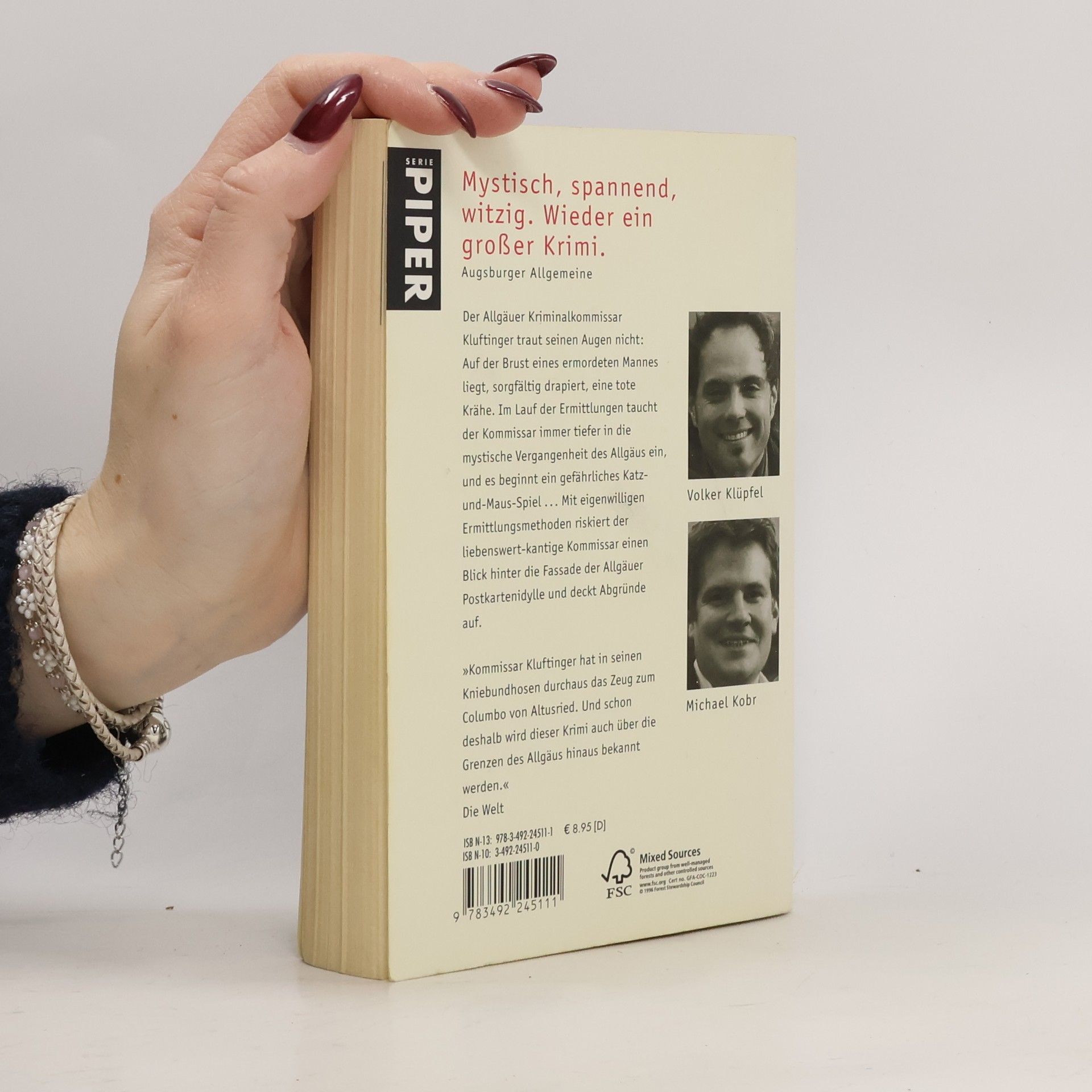 Der Allgäuer Kriminalkommissar Kluftinger traut seinen Augen nicht: Auf der Brust eines toten Mannes in einem Wald bei Kempten liegt, sorgfältig drapiert, eine tote Krähe. Im Lauf der Ermittlungen taucht der Kommissar immer tiefer in die mystische Vergangenheit des Allgäus ein, und es beginnt ein Katz-und-Maus-Spiel mit dem Mörder, bei dem die Zeit gegen ihn arbeitet. Denn alle Zeichen sprechen dafür, dass das Morden weitergeht … Mit eigenwilligen Ermittlungsmethoden riskiert der liebenswert-kantige Kommissar einen Blick hinter die Fassade der Allgäuer Postkartenidylle und deckt Abgründe auf.