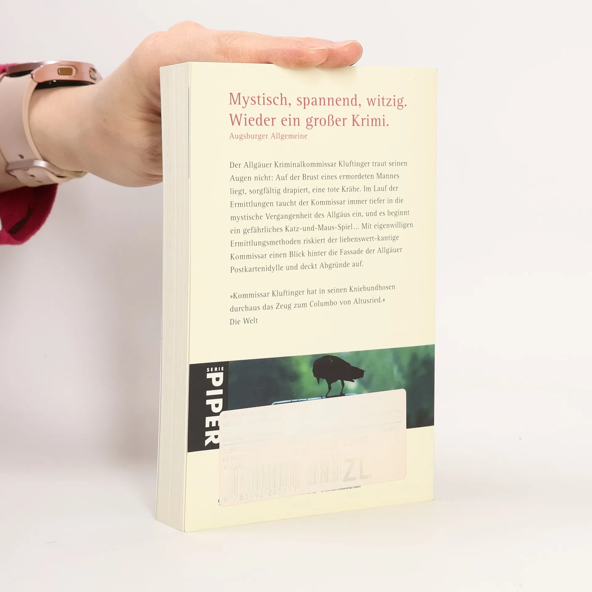 Der Allgäuer Kriminalkommissar Kluftinger traut seinen Augen nicht: Auf der Brust eines toten Mannes in einem Wald bei Kempten liegt, sorgfältig drapiert, eine tote Krähe. Im Lauf der Ermittlungen taucht der Kommissar immer tiefer in die mystische Vergangenheit des Allgäus ein, und es beginnt ein Katz-und-Maus-Spiel mit dem Mörder, bei dem die Zeit gegen ihn arbeitet. Denn alle Zeichen sprechen dafür, dass das Morden weitergeht … Mit eigenwilligen Ermittlungsmethoden riskiert der liebenswert-kantige Kommissar einen Blick hinter die Fassade der Allgäuer Postkartenidylle und deckt Abgründe auf.