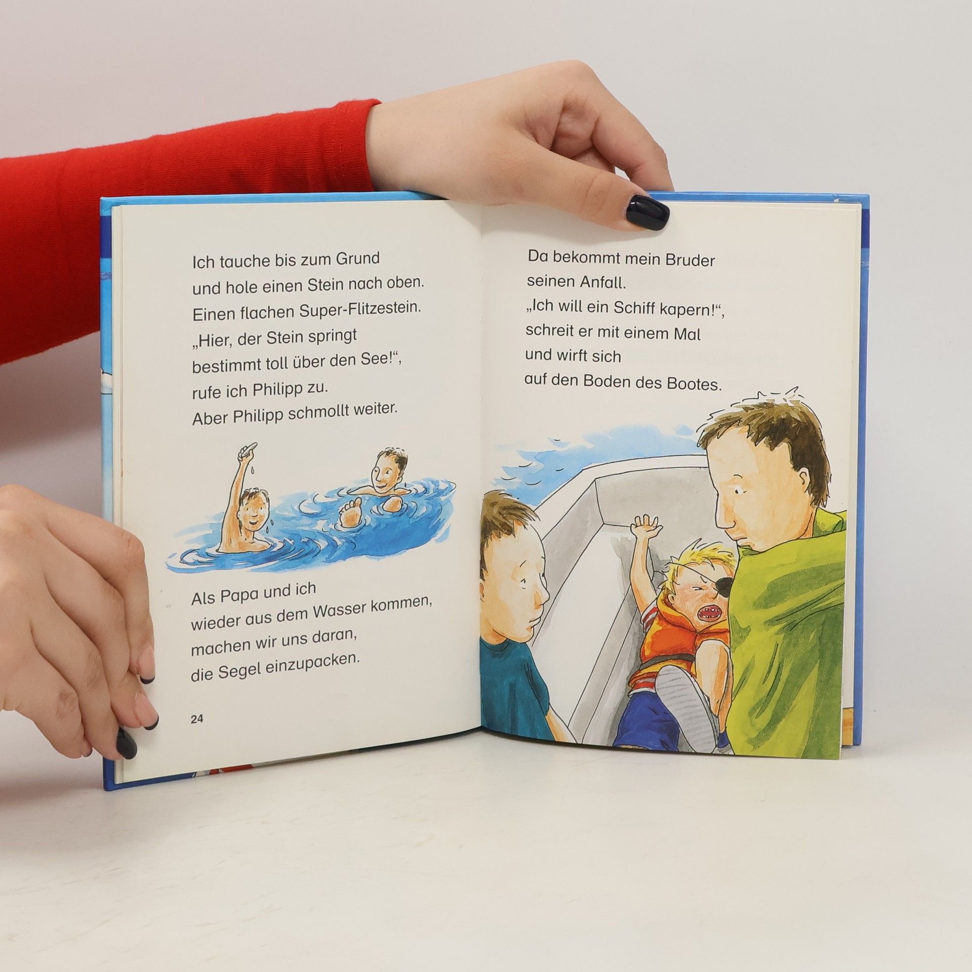 Florian ist genervt. Sein kleiner Bruder Philipp hat eine Piratenmacke. Und jetzt will er auch noch beim Segeln mit Papa ein Schiff kapern! Als sie endlich ein Segelboot erwischen, wird es richtig ernst. Beinahe wäre die Piratenbeute untergegangen!