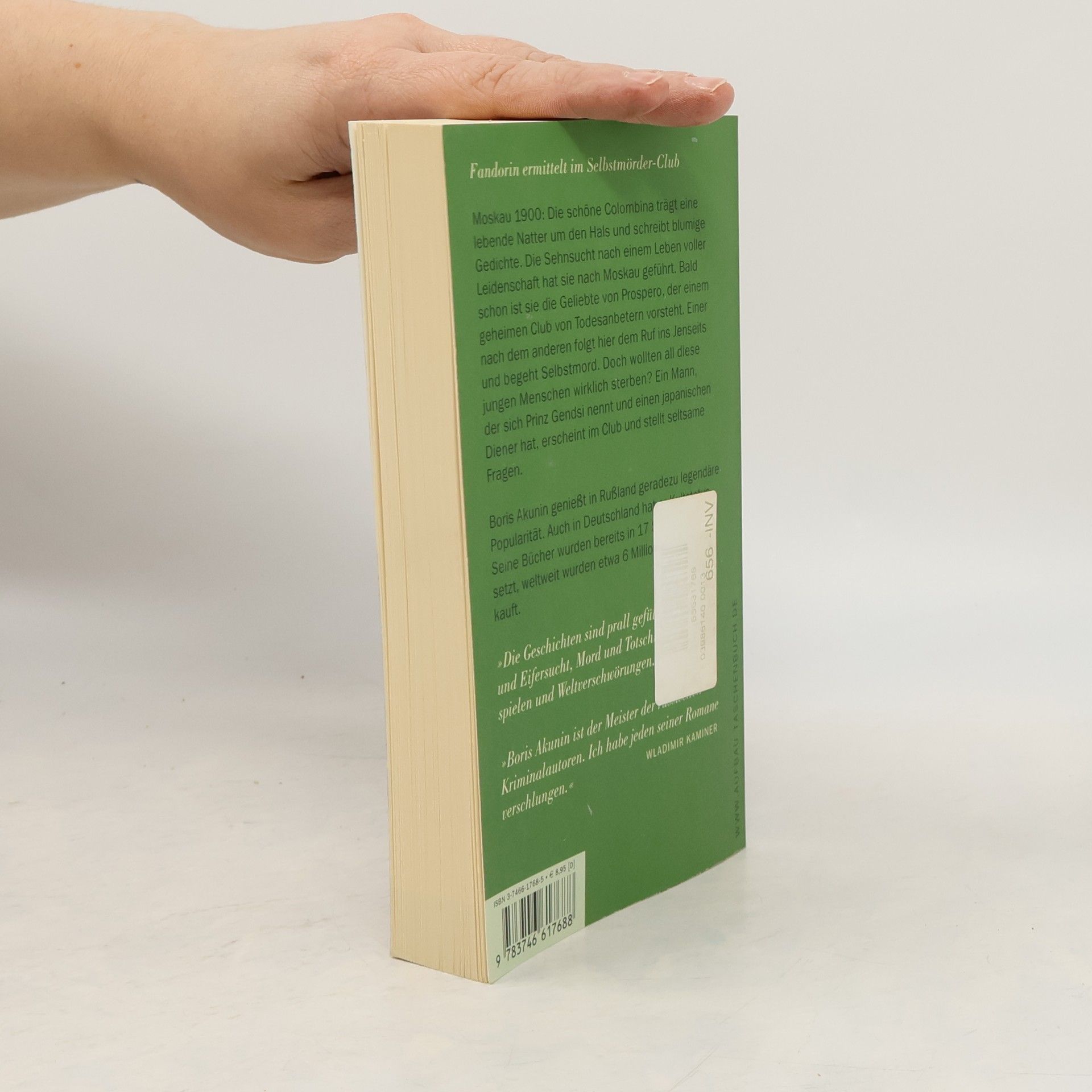 Fandorin ermittelt im Selbstmörder-Club Moskau 1900: Die schöne Colombina trägt eine lebende Natter um den Hals und schreibt blumige Gedichte. Die Sehnsucht nach einem Leben voller Leidenschaft hat sie nach Moskau geführt. Bald schon ist sie die Geliebte von Prospero, der einem geheimen Club von Todesanbetern vorsteht. Einer nach dem anderen folgt hier dem Ruf ins Jenseits und begeht Selbstmord. Doch wollten all diese jungen Menschen wirklich sterben? Ein Mann, der sich Prinz Gendsi nennt und einen japanischen Diener hat, erscheint im Club und stellt seltsame Fragen. »Die Geschichten sich prall gefüllt mit Liebe und Eifersucht, Mord und Totschlag, Doppelspielen und Weltverschwörungen.« FAZ »Boris Akunin ist der Meister der Russischen Kriminalautoren. Ich habe jeden seiner Romane verschlungen.« Wladimir Kaminer