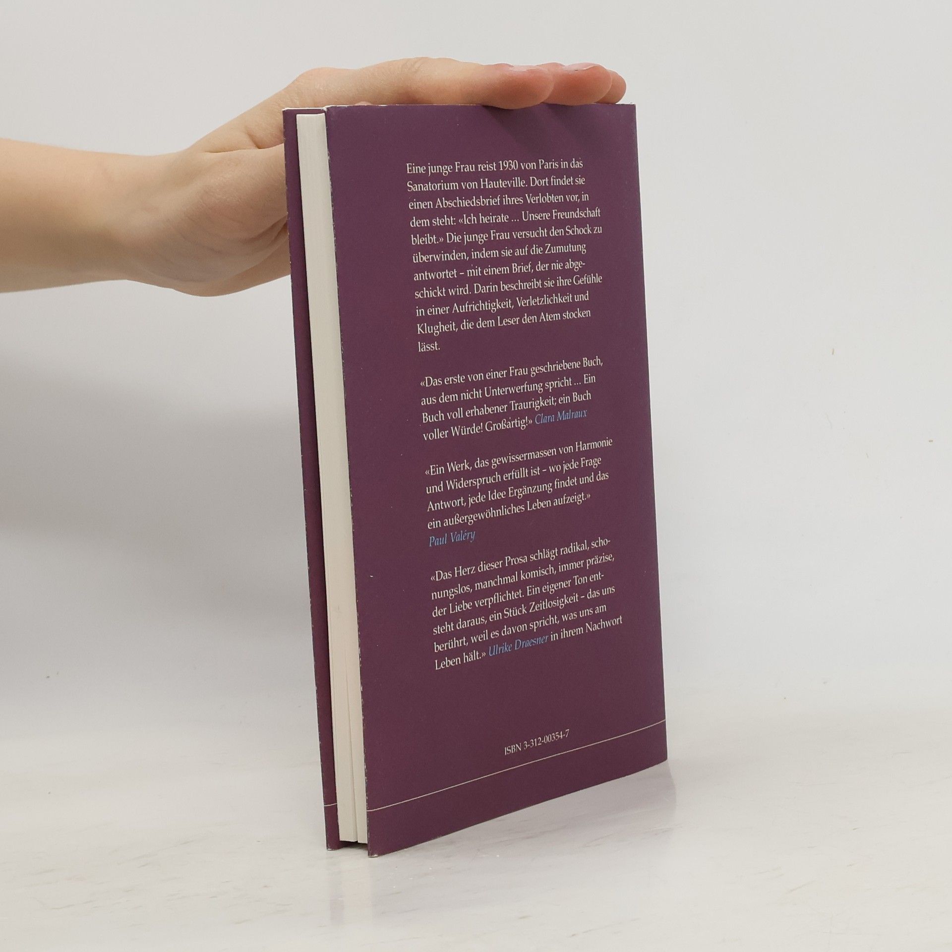 Eine junge Frau reist 1930 wegen eines Lungenleidens von Paris ins Sanatorium von Hauteville. Dort findet sie ein Schreiben ihres Verlobten vor. Es ist ein Abschiedsbrief und darin steht: „Ich heirate. Unsere Freundschaft bleibt.“ Die junge Frau versucht den Schock zu überwinden, indem sie auf die Zumutung antwortet - in einem Brief, der nie abgeschickt wird.